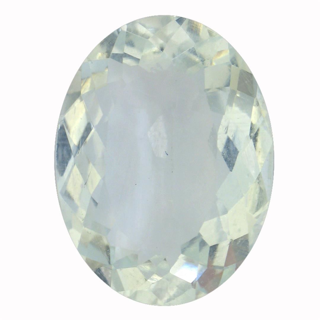 One oval cut natural aquamarine exact weight 6.65ct., clarity is slightly included, type I, medium light, slightly grayish, very slightly greenish blue color, (GIA vslgB 4/2), cut is good. Westfield Appraised at $2,560.00.