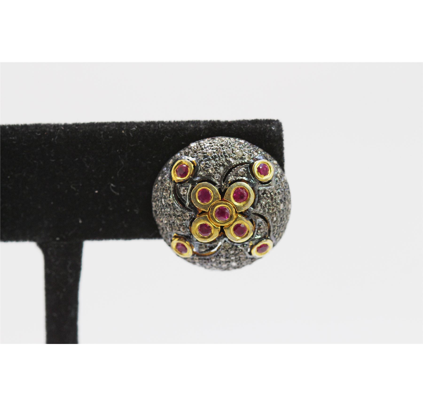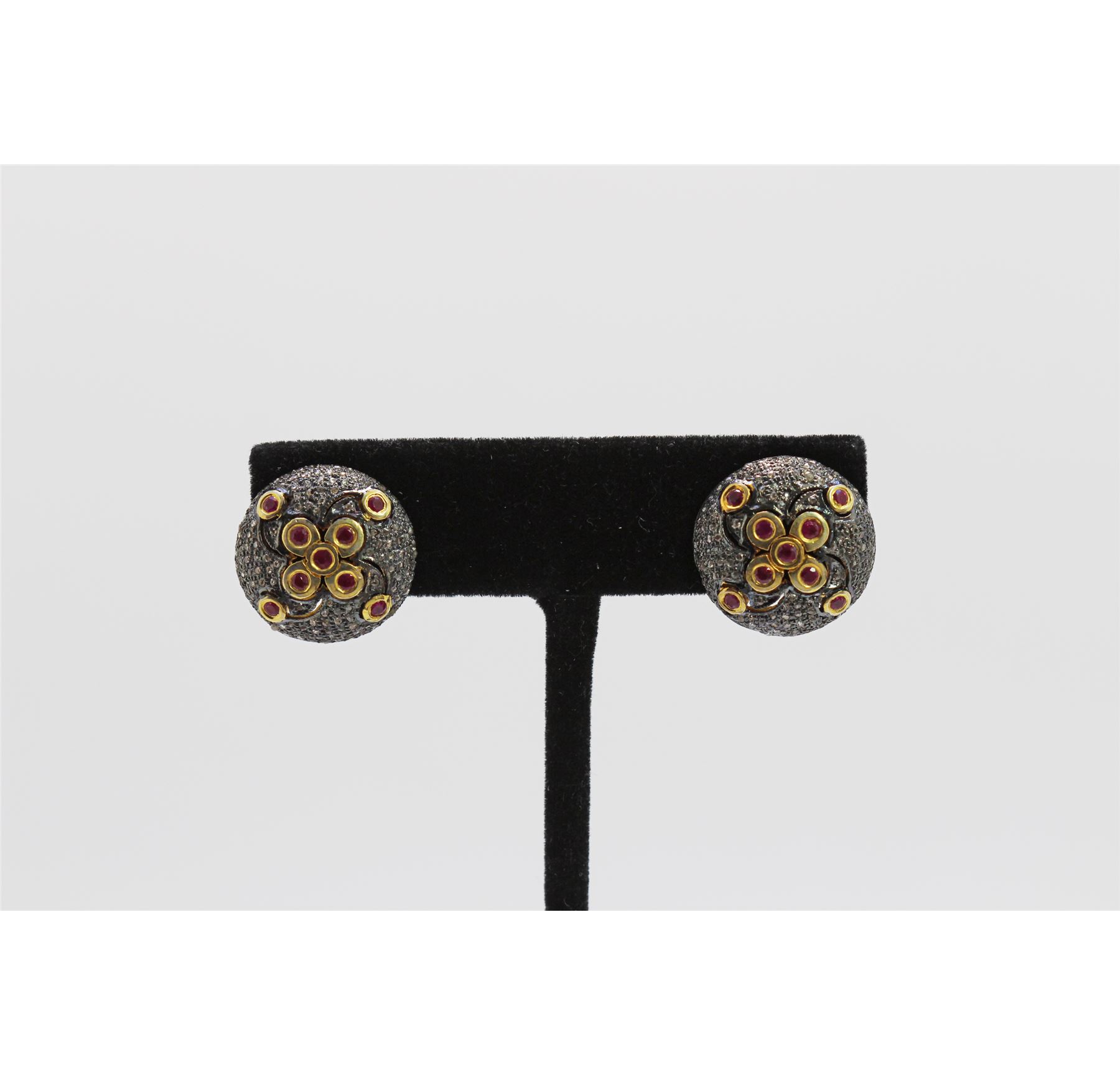 6.66gm Gold Plated / Silver / Ruby / Diamond Earring / Measurement : 10.9mm / #NSG101