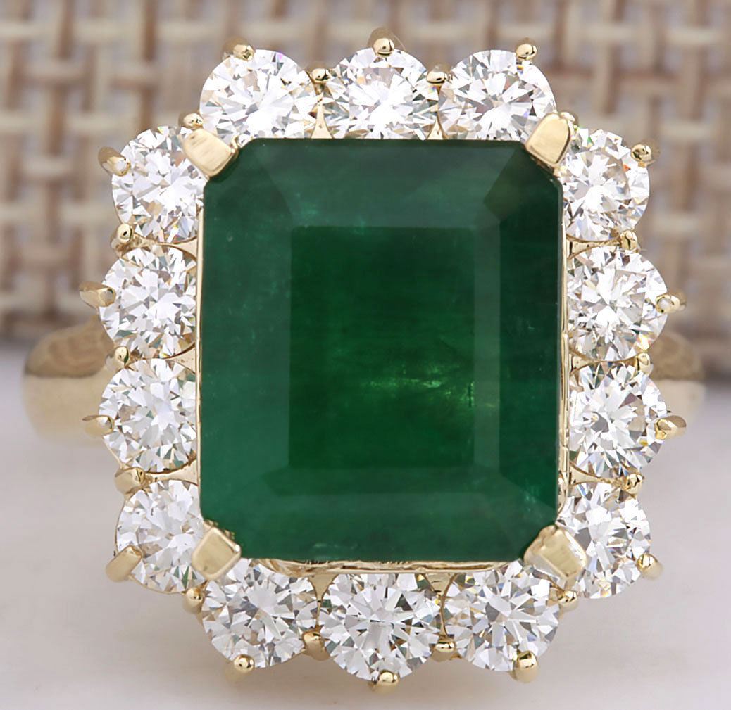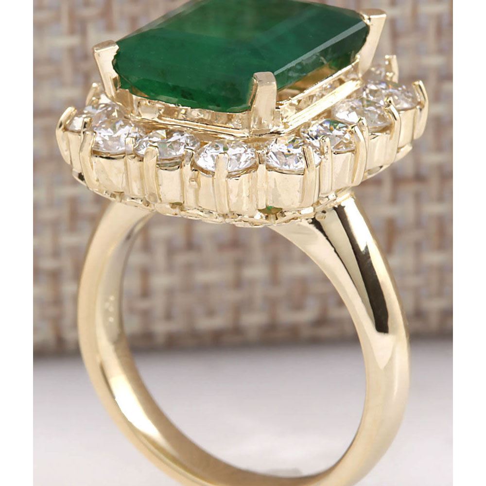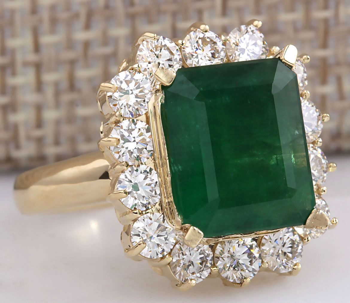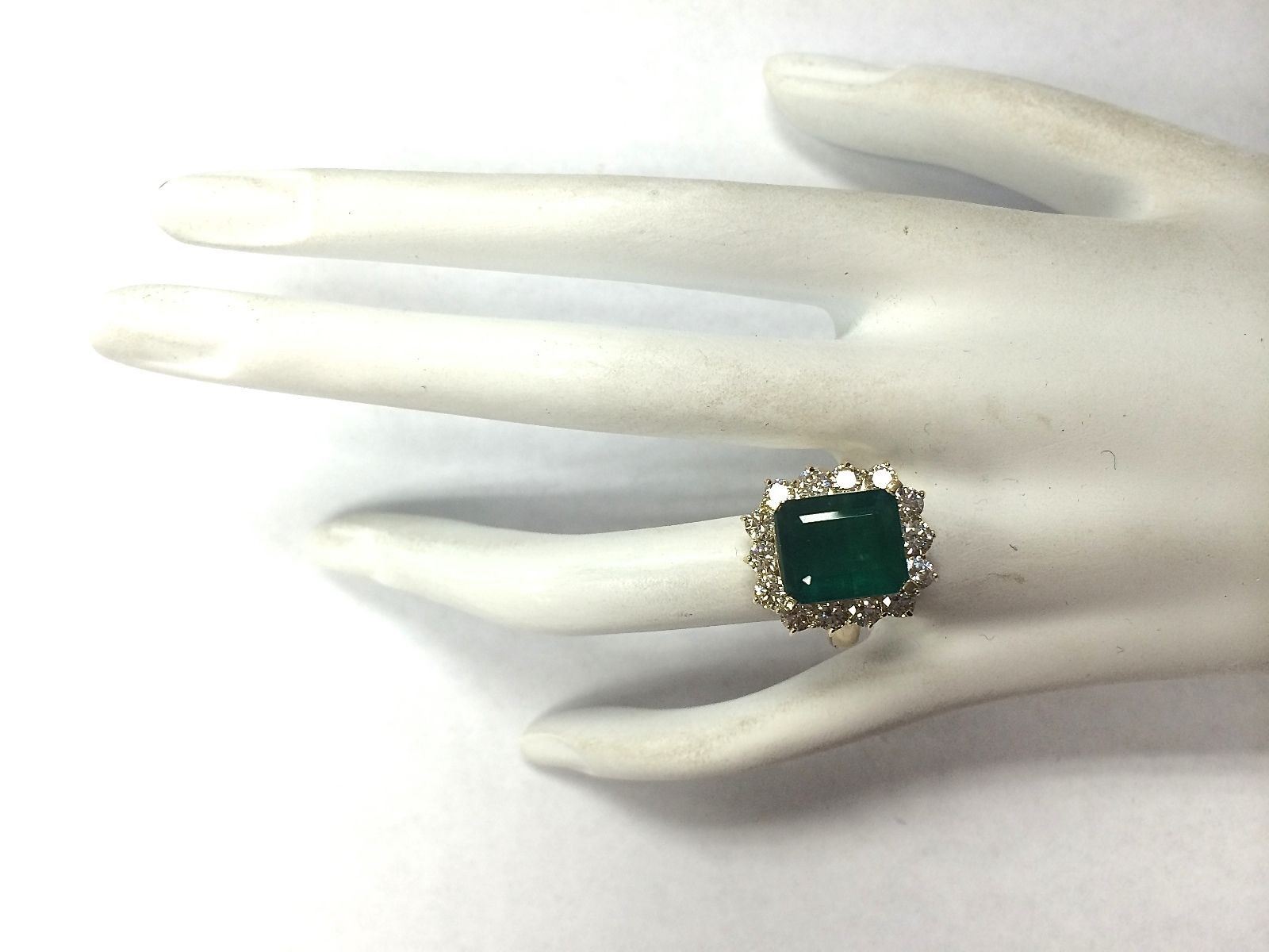6.68 CTW Natural Emerald And Diamond Ring 18K Solid Yellow Gold