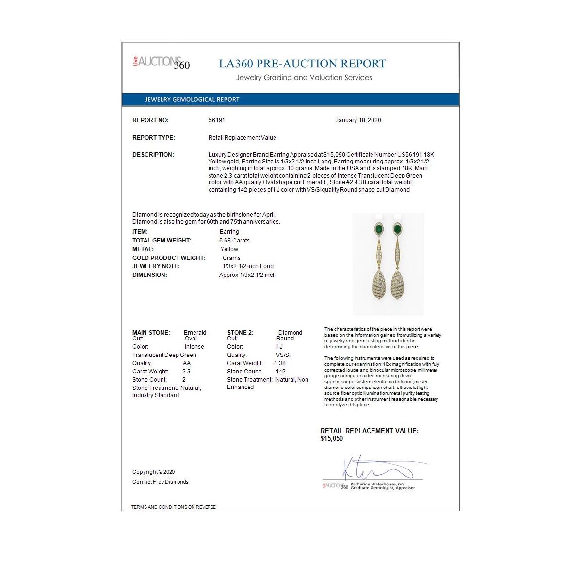 REF-342R2K - SKU: 56191 ---- 6.68 ctw Emerald & Diamond Earrings 18K Yellow Gold