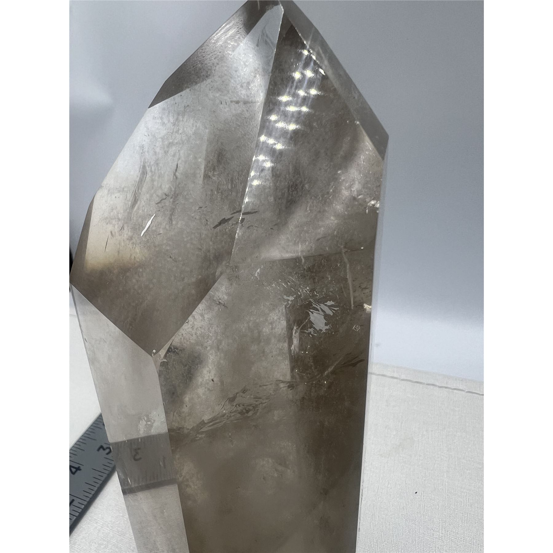 6.7 X 2.3 INCH SMOKY QUARTZ TOWER WITH GREEN GARDEN INCULSION
