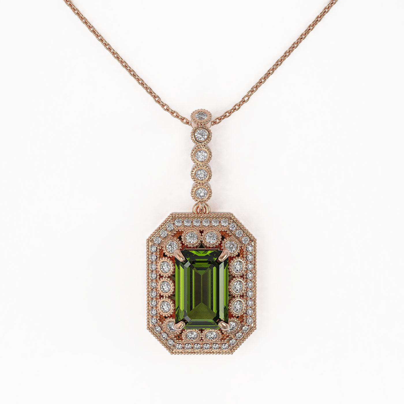 REF-254N5F - SKU: 43455 ---- 6.7 ctw Tourmaline & Diamond Victorian Necklace 14K Rose Gold