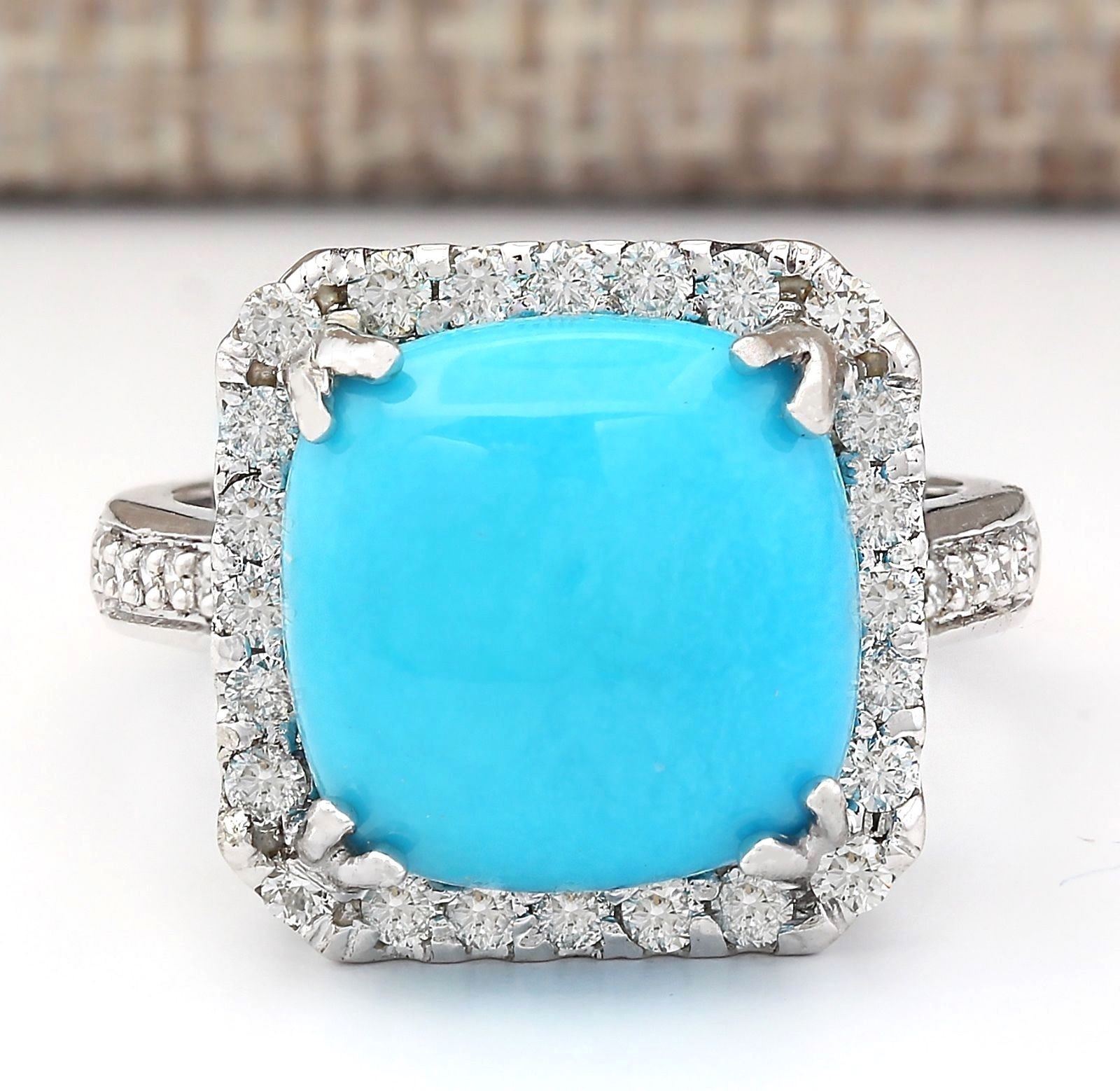 6.70 CTW Natural Turquoise And Diamond Ring In 14k White Gold
