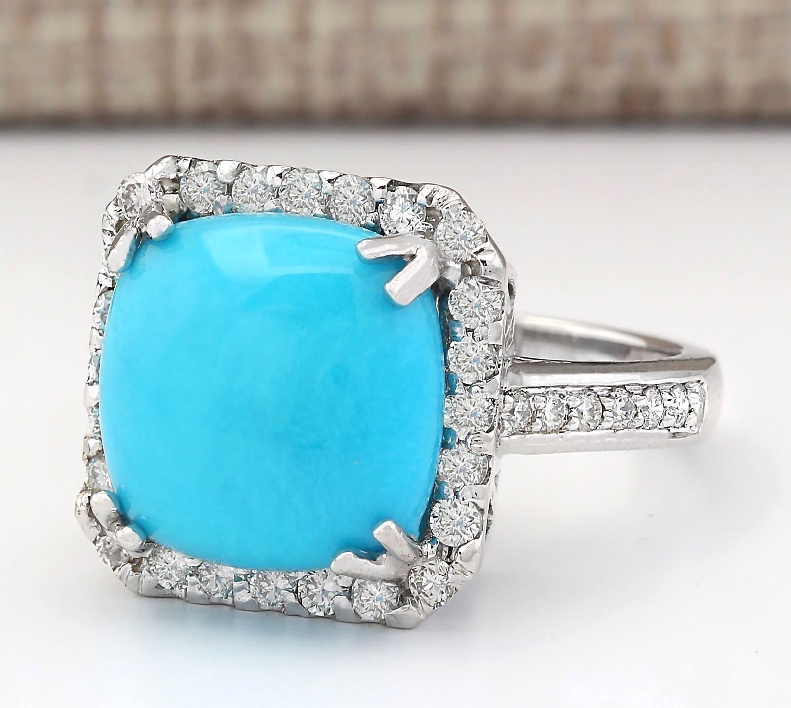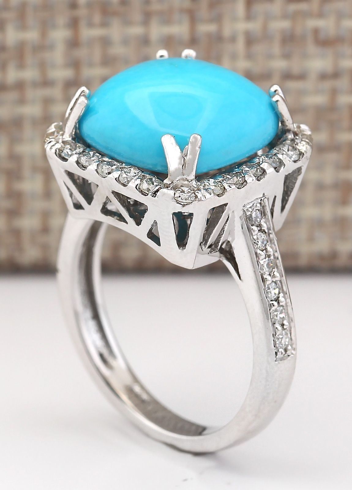 6.70 CTW Natural Turquoise And Diamond Ring In 18K White Gold