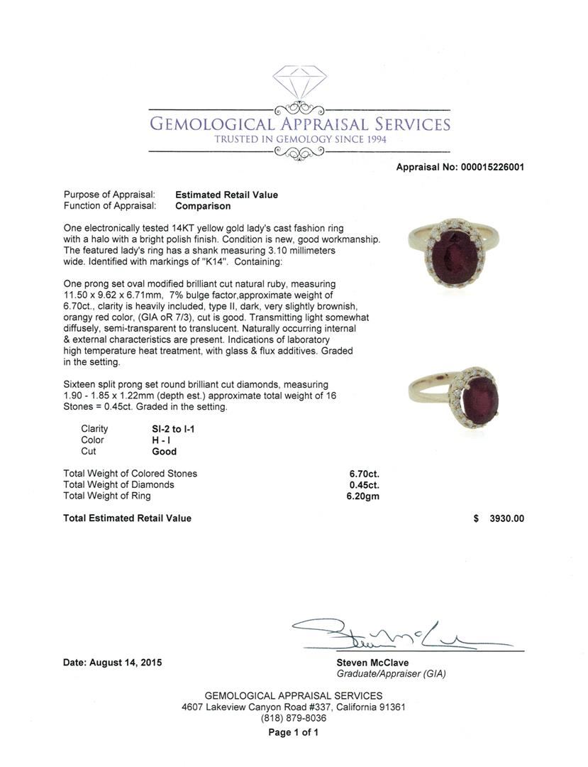 One electronically tested 14KT yellow gold lady's cast fashion ring with a halo with a bright polish finish. The featured lady's ring has a shank measuring 3.10 millimeters wide. Identified with markings of "K14". Condition is new, good workmanship. Conta GAS Appraised at $3,930.00.