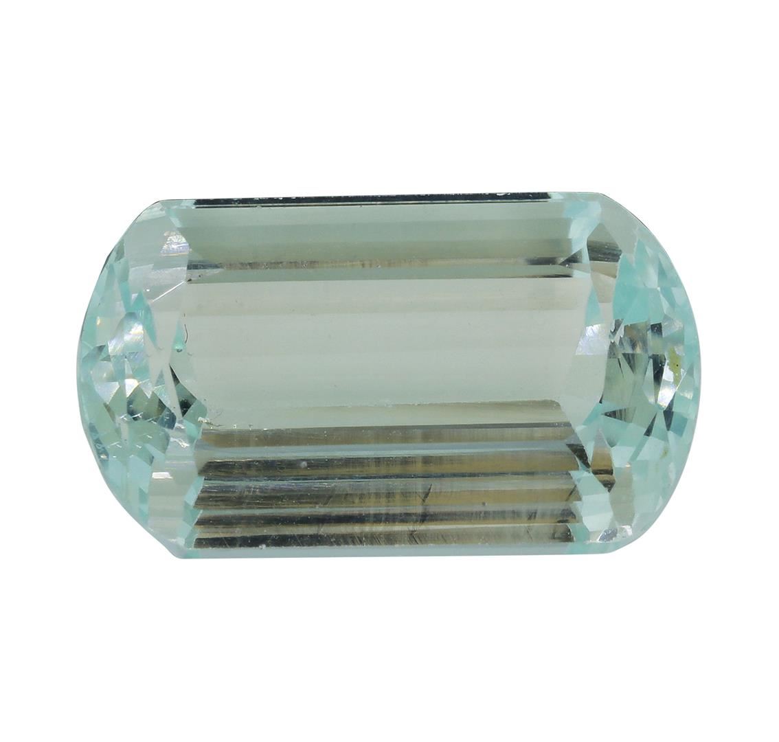 One natural fancy mixed cut aquamarine with an exact weight of 6.71ct., clarity is eye clean, slightly grayish greenish blue, medium light. Gemological Appraisals Services estimates the retail value at $2583.35 GAS Appraised.