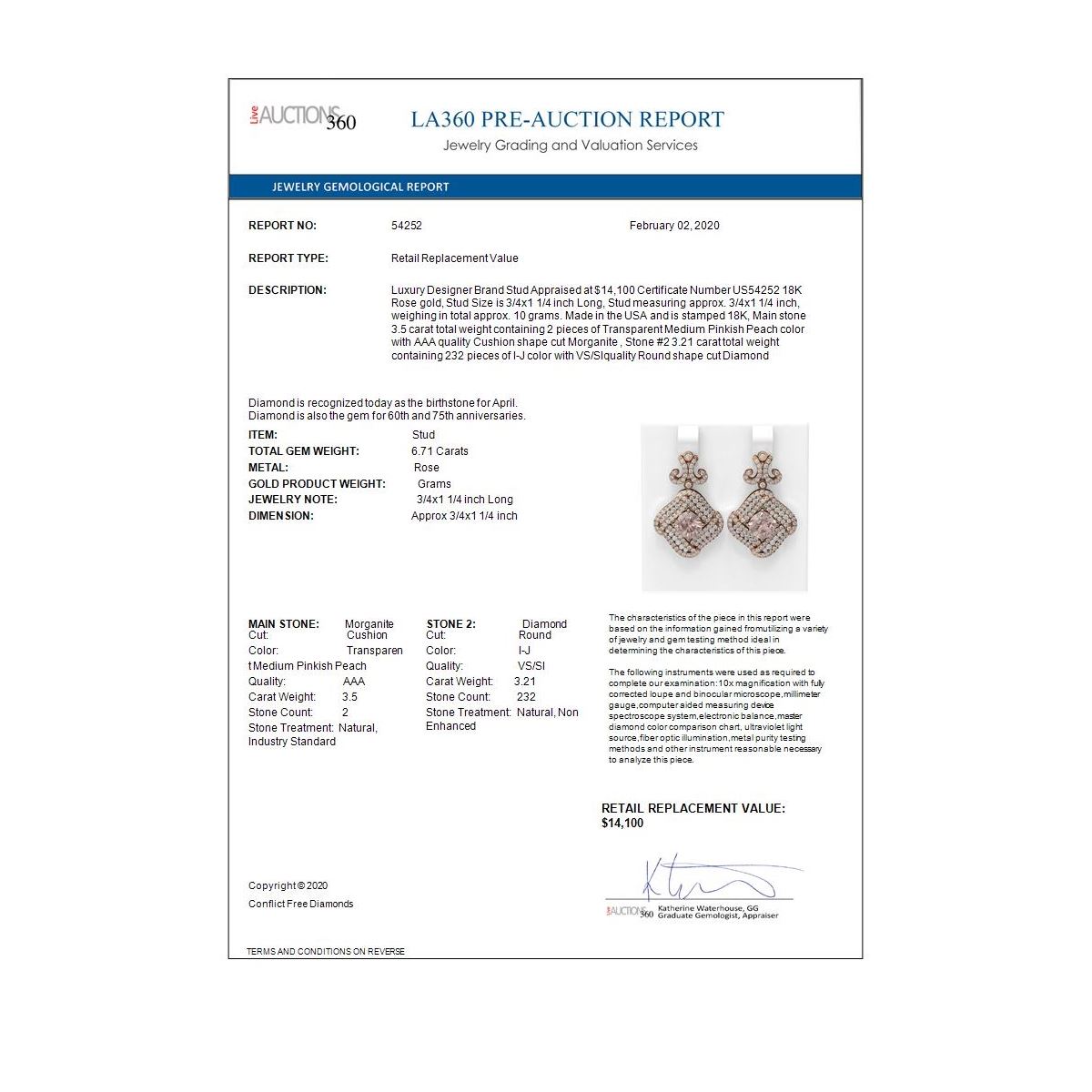REF-320H8R - SKU: 54252 ---- 6.71 ctw Morganite & Diamond Earrings 18K Rose Gold