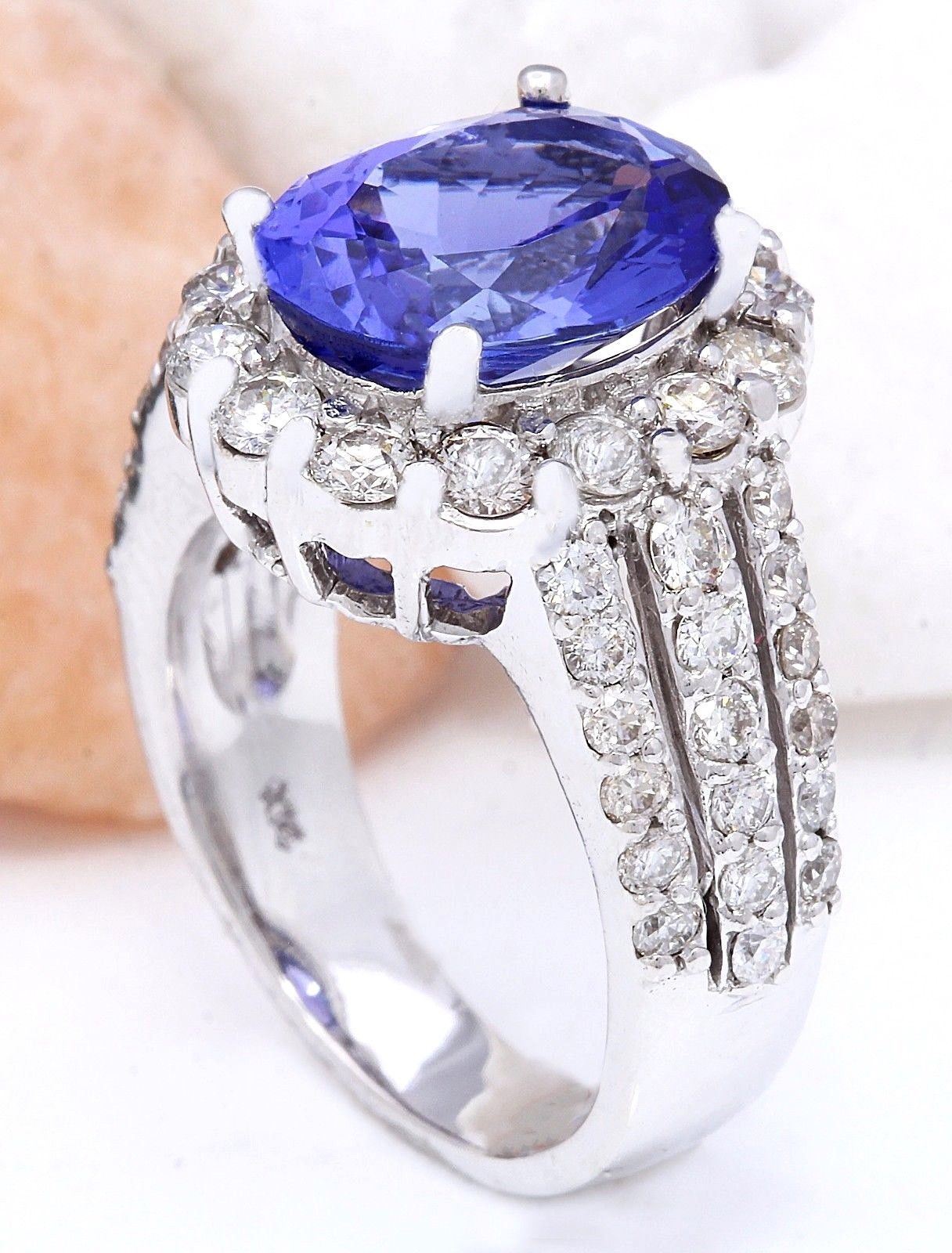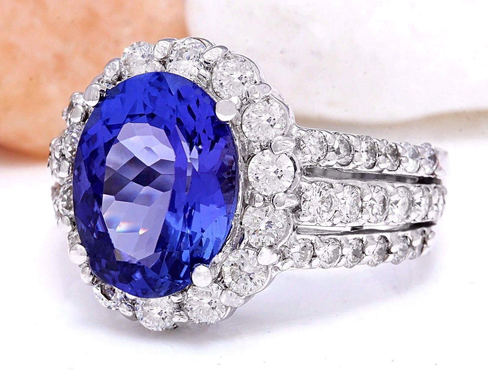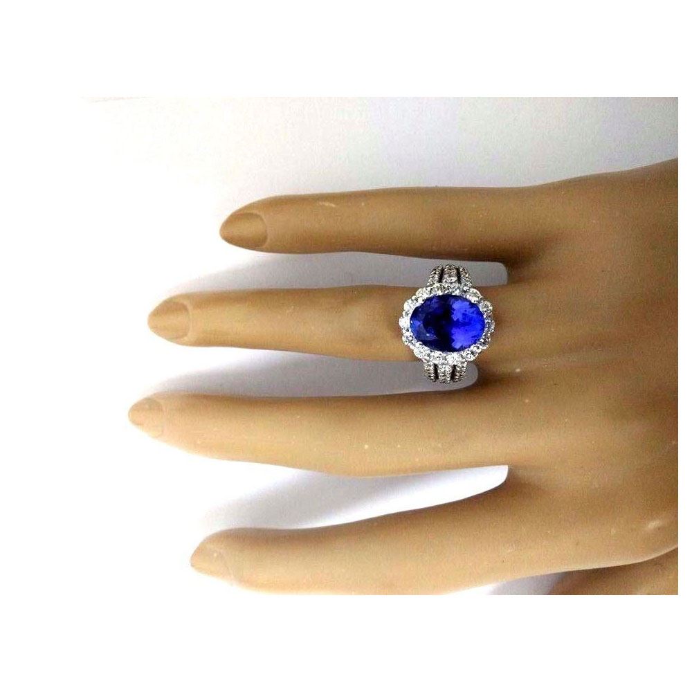 6.72 Carat Natural Tanzanite 18K Solid White Gold Diamond Ring