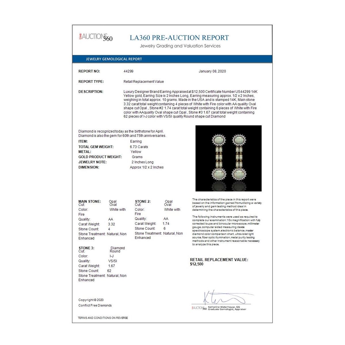 REF-227W3H - SKU: 44299 ---- 6.73 ctw Opal & Diamond Earrings 14K Yellow Gold