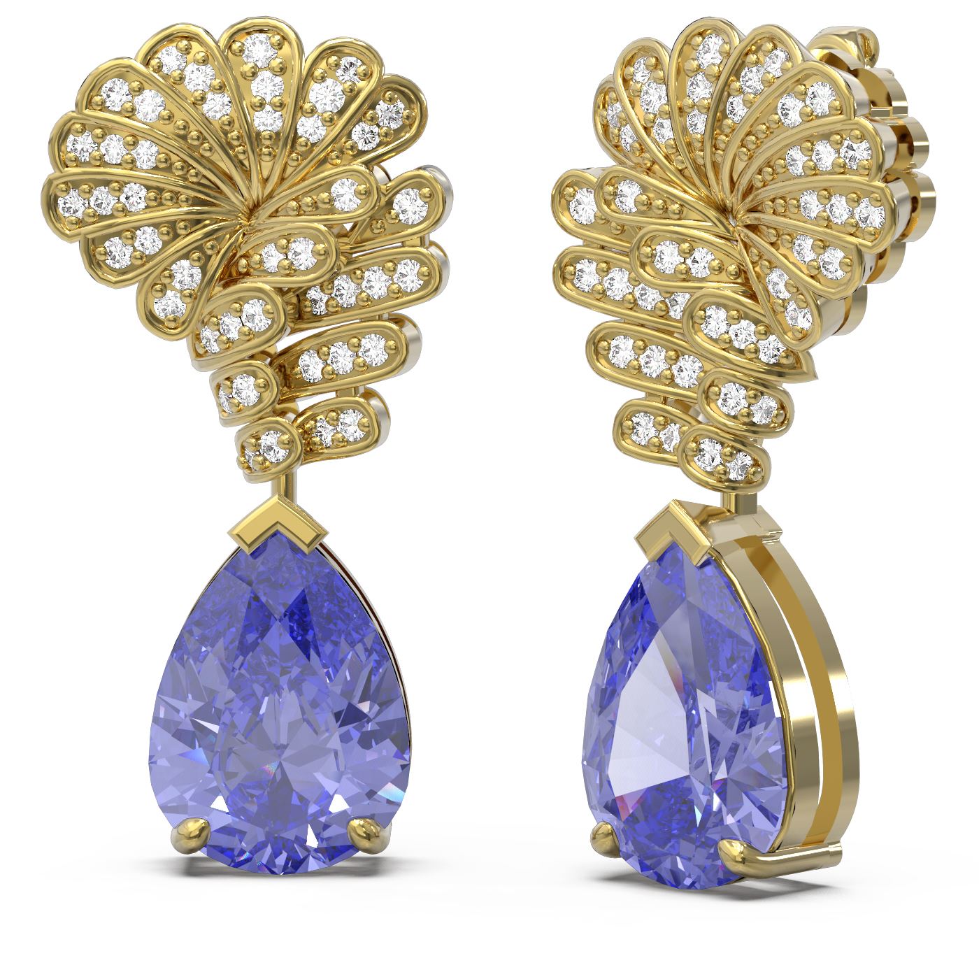 REF-245R5K - SKU: 61564 ---- 6.73 ctw Tanzanite & Diamond Earrings 18K Yellow Gold