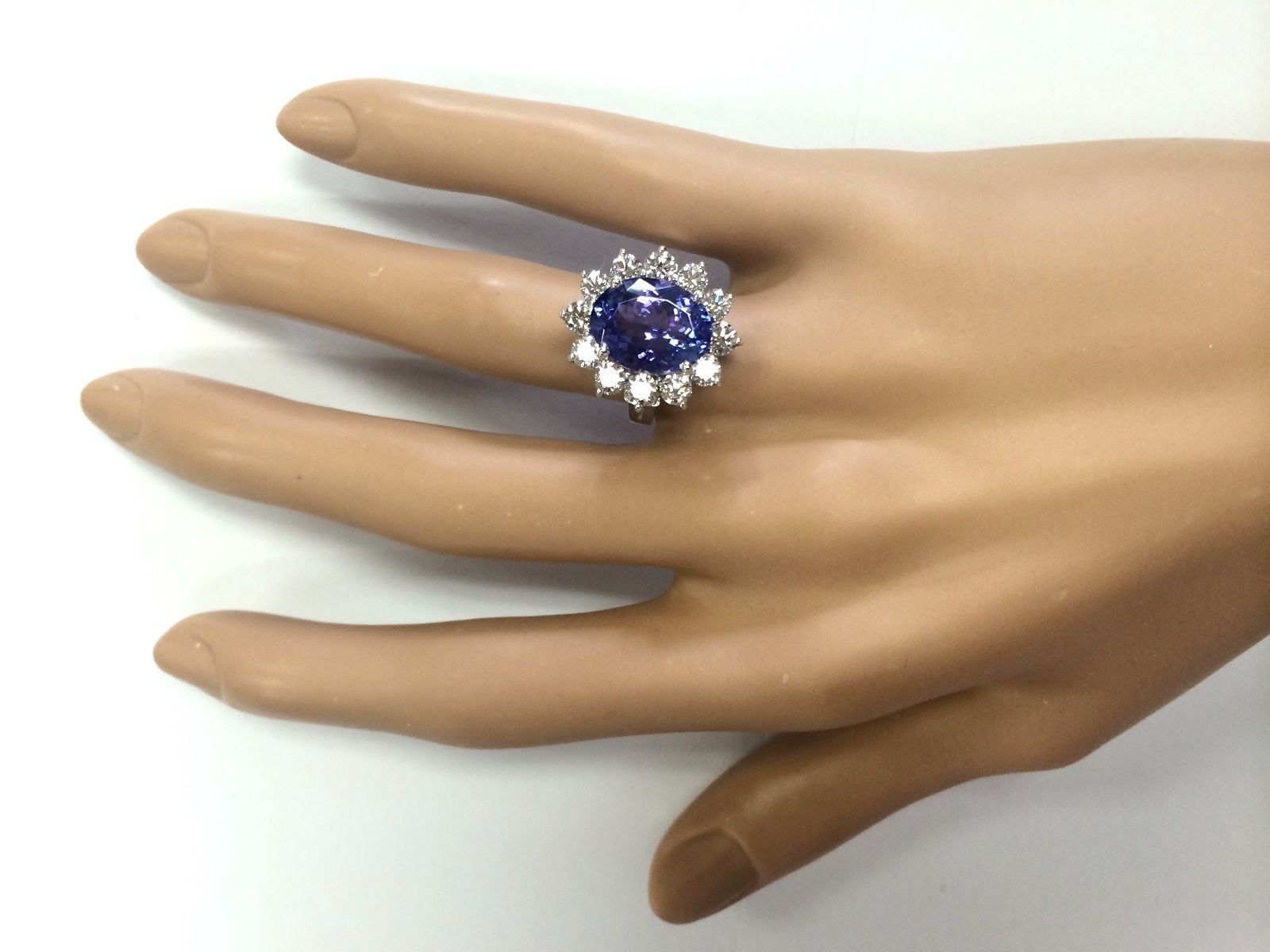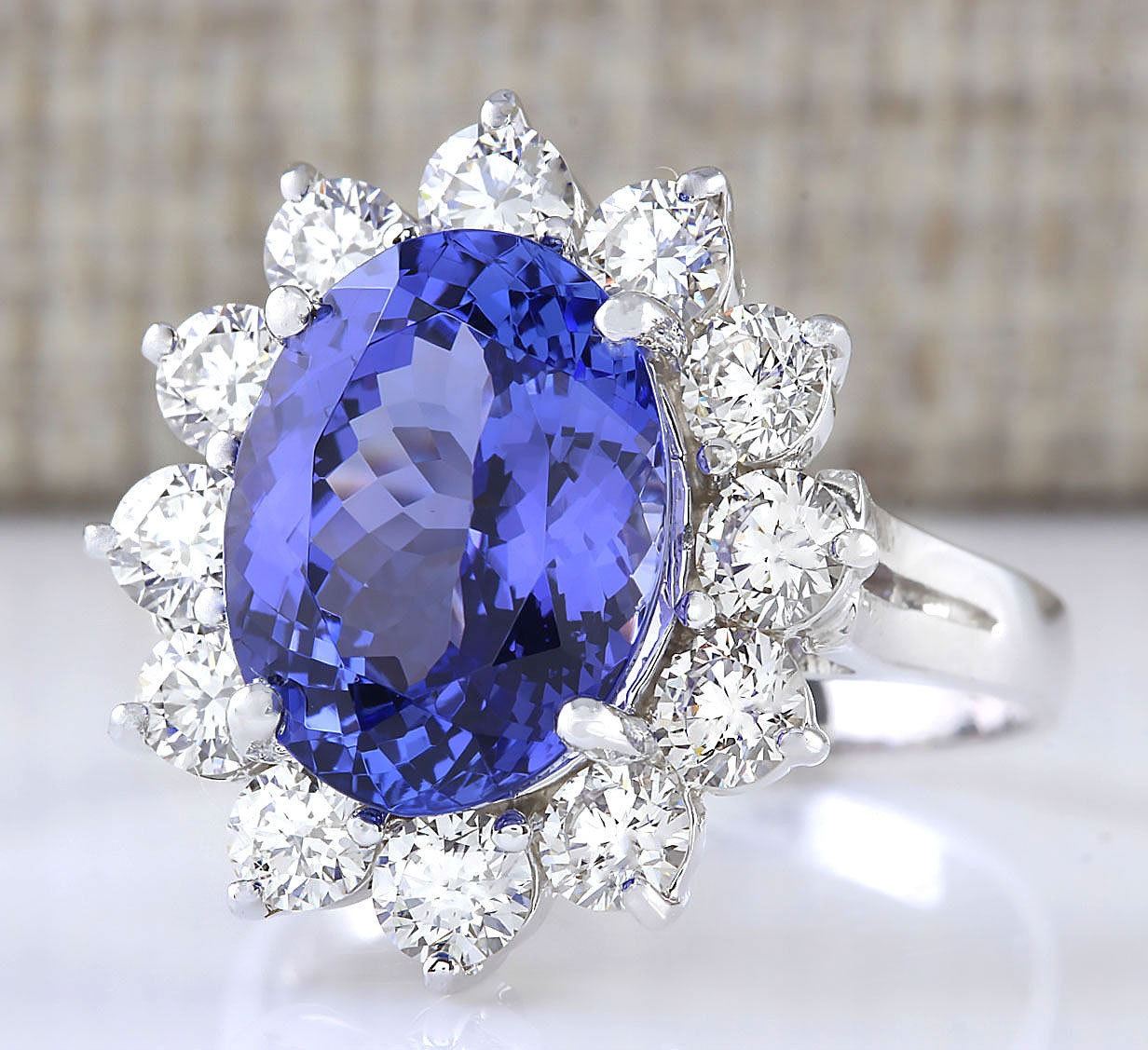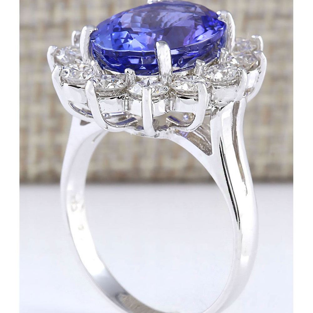 6.78 CTW Natural Blue Tanzanite And Diamond Ring 18K Solid White Gold