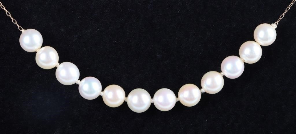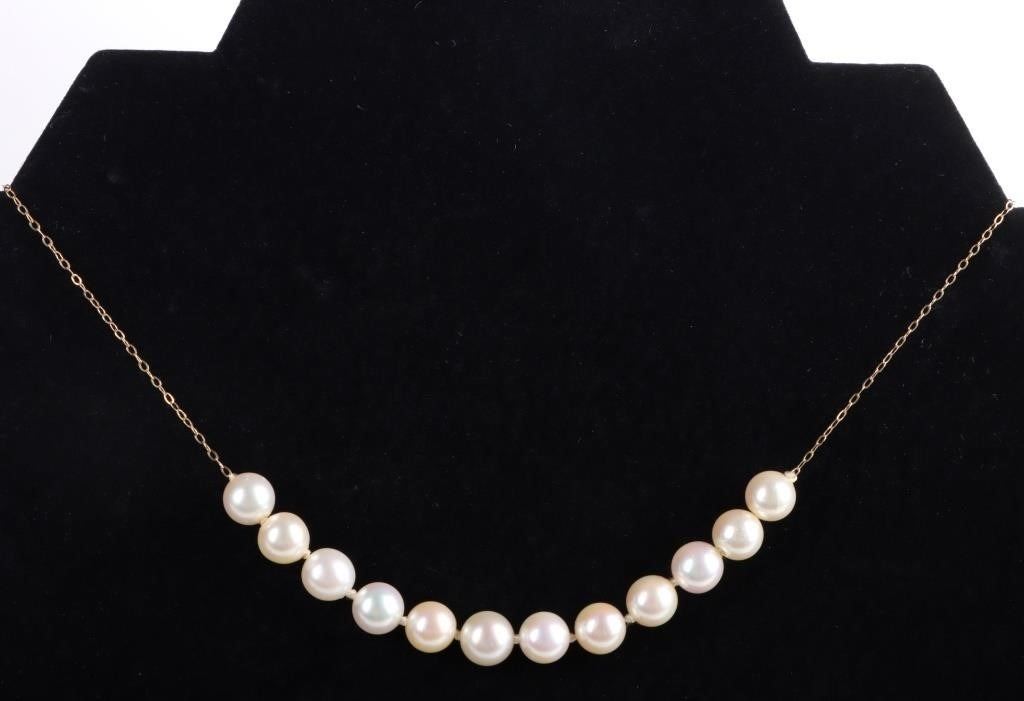 6.8-7.3mm white freshwater pearl 14K yellow gold ladies necklace.