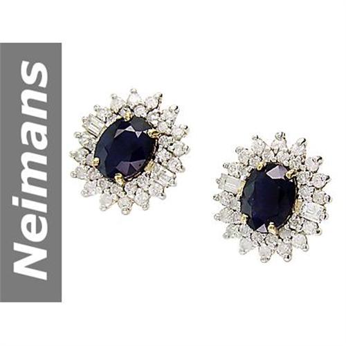 </tr></table><table border=0 width=100% cellspacing=0 cellpadding=10><tr><td valign=top style='background-repeat: no-repeat; font-family: Verdana; font-size: 8pt'><b><!-- ///START/// INSERT JEWELRY SPECIFIC DATA --><font size=5>Graduate Gemologist Certified 6.8 Carat Sapphire & Diamond Earrings elegantly set in solid 14kt gold!!</font><font size=5>