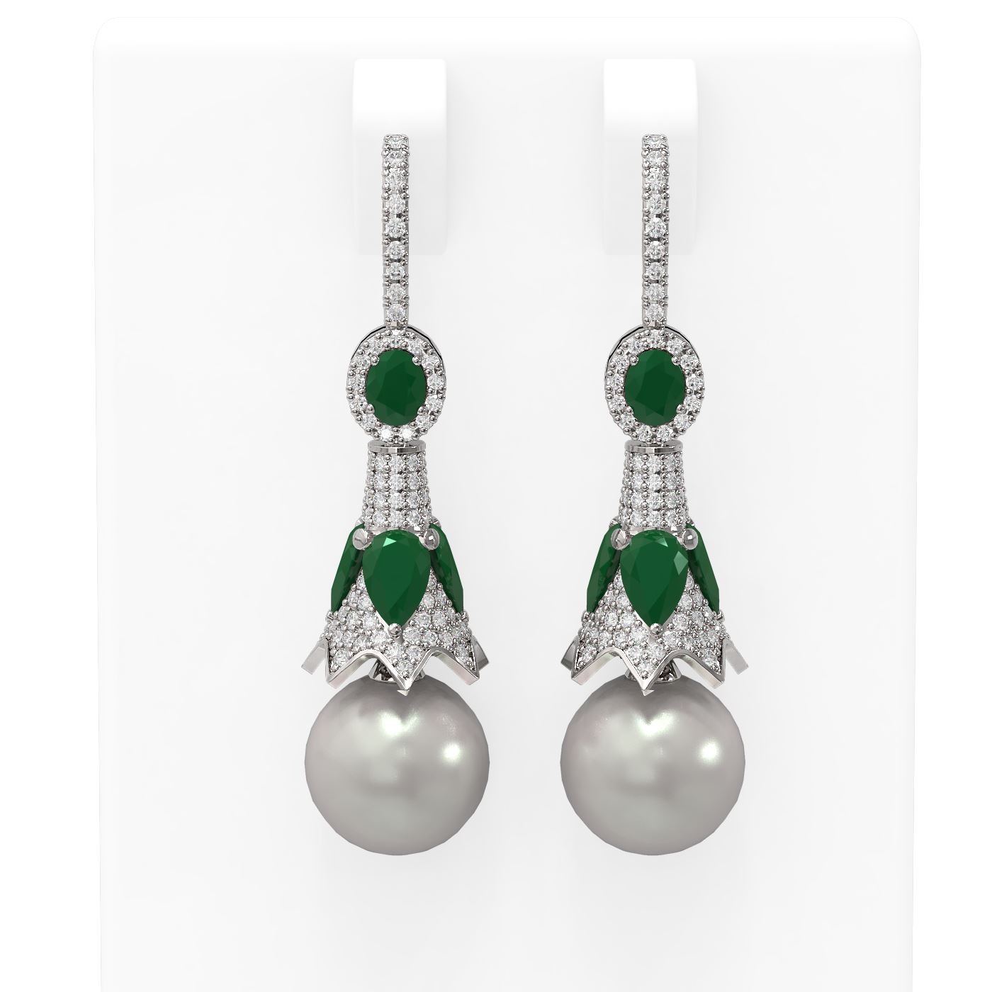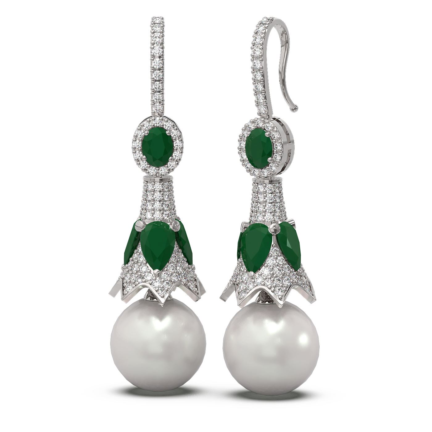 REF-303W6H - SKU: 61379 ---- 6.8 ctw Emerald & Diamond Earrings 18K White Gold