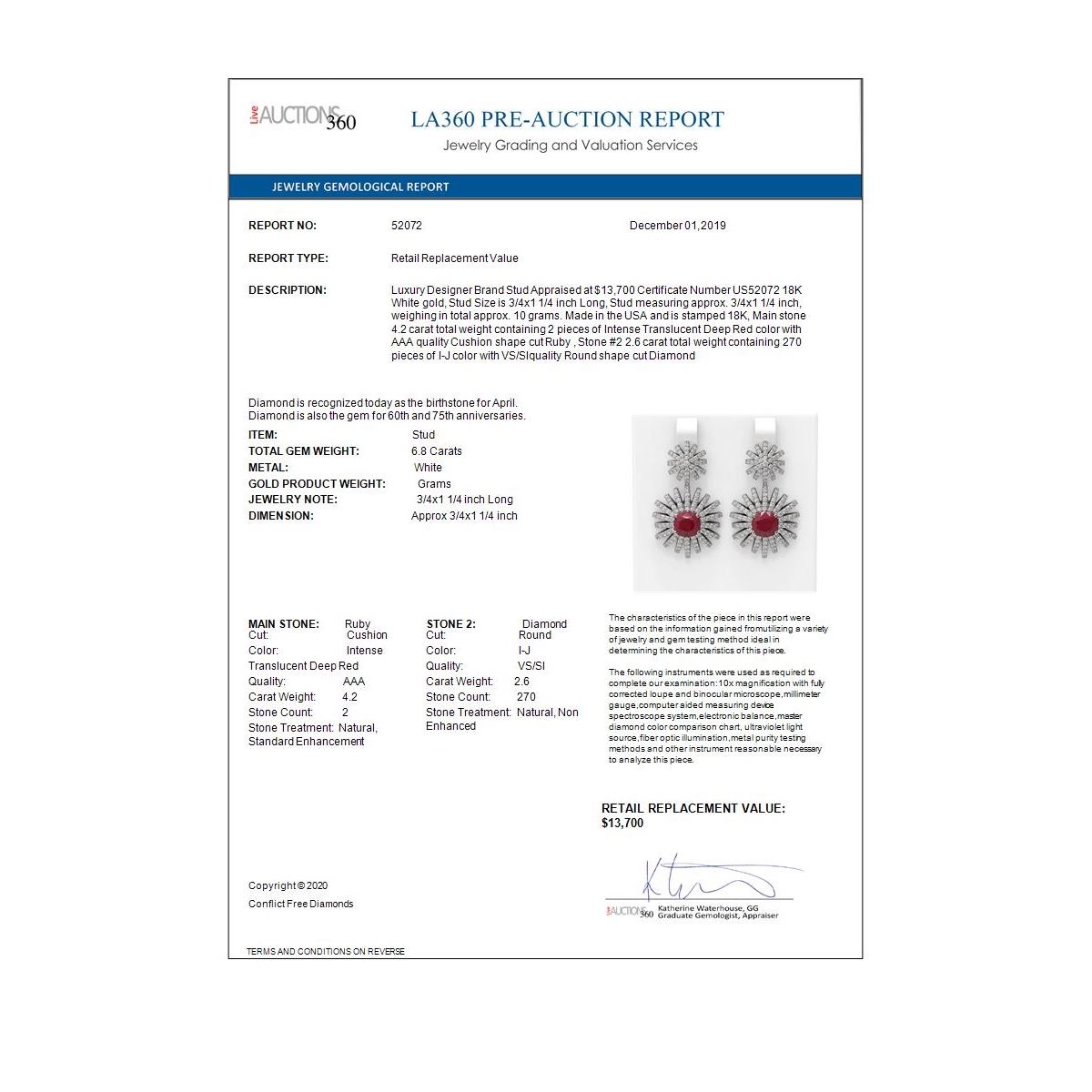 REF-327X3A - SKU: 52072 ---- 6.8 ctw Ruby & Diamond Earrings 18K White Gold