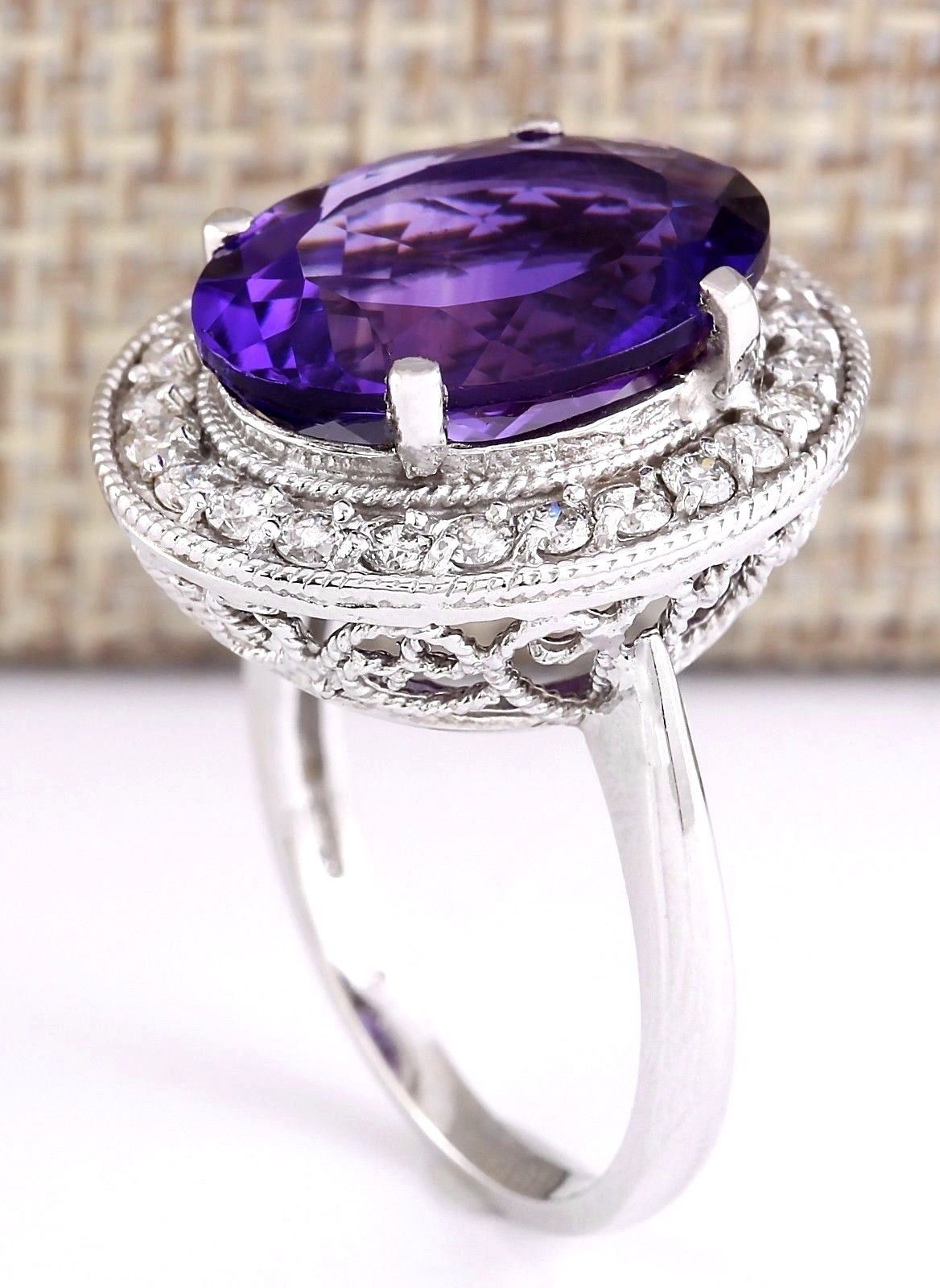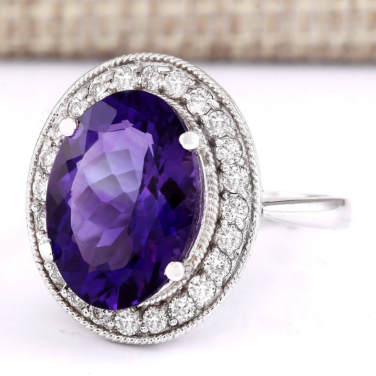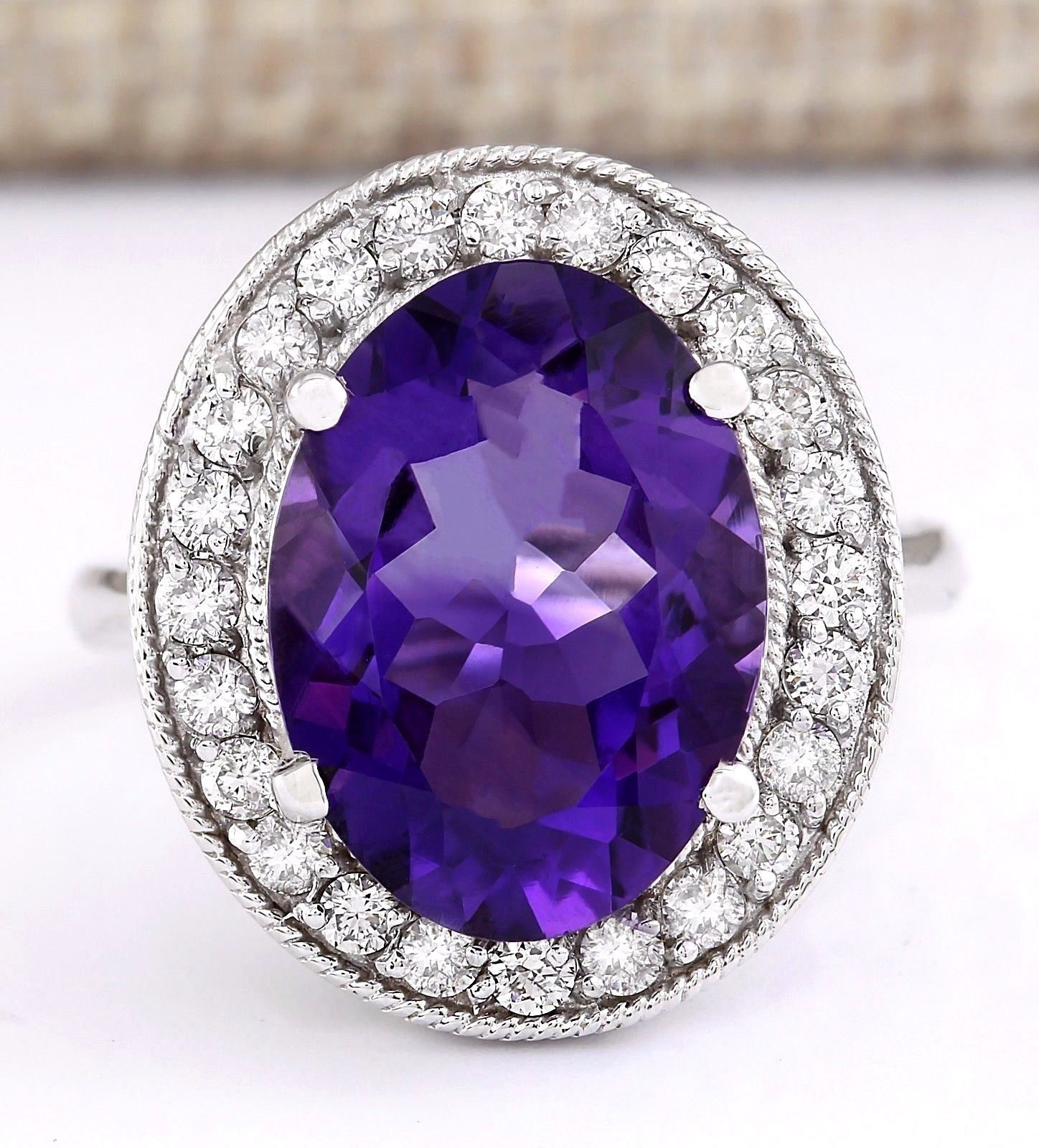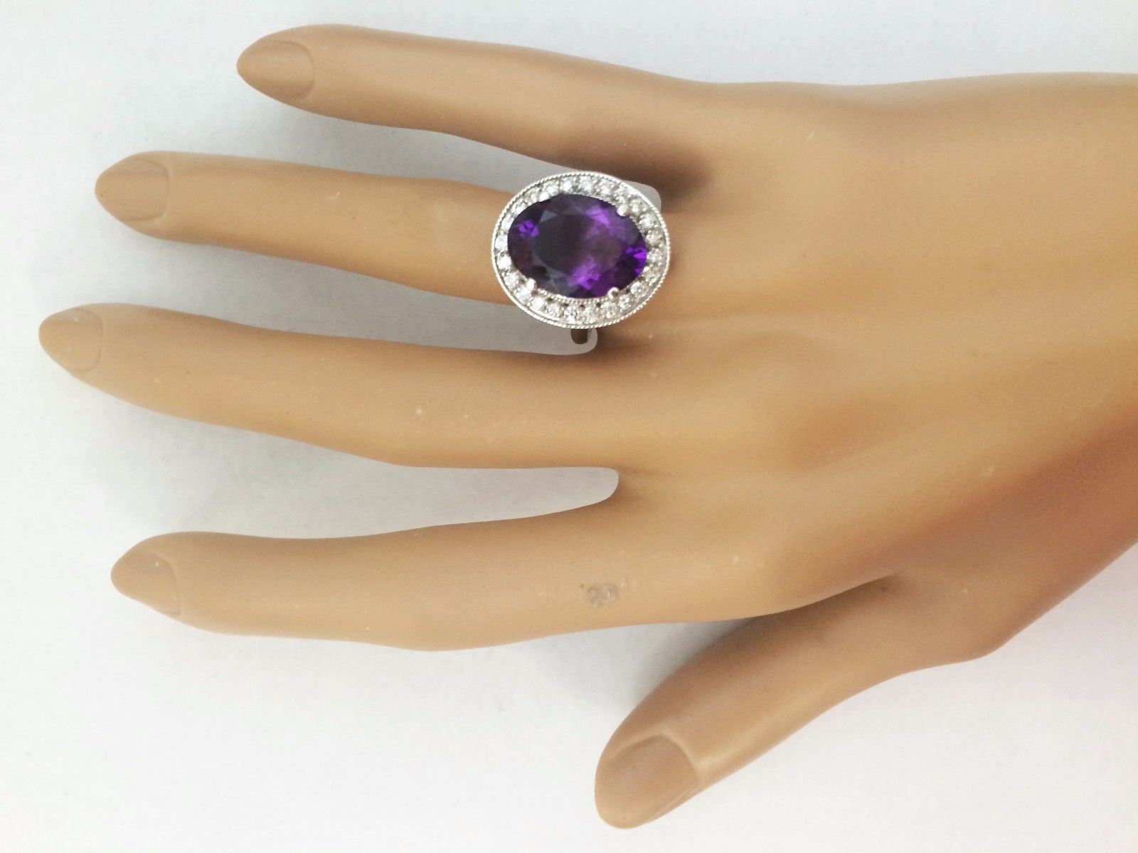 6.81 CTW Natural Amethyst And Diamond Ring In 14k White Gold