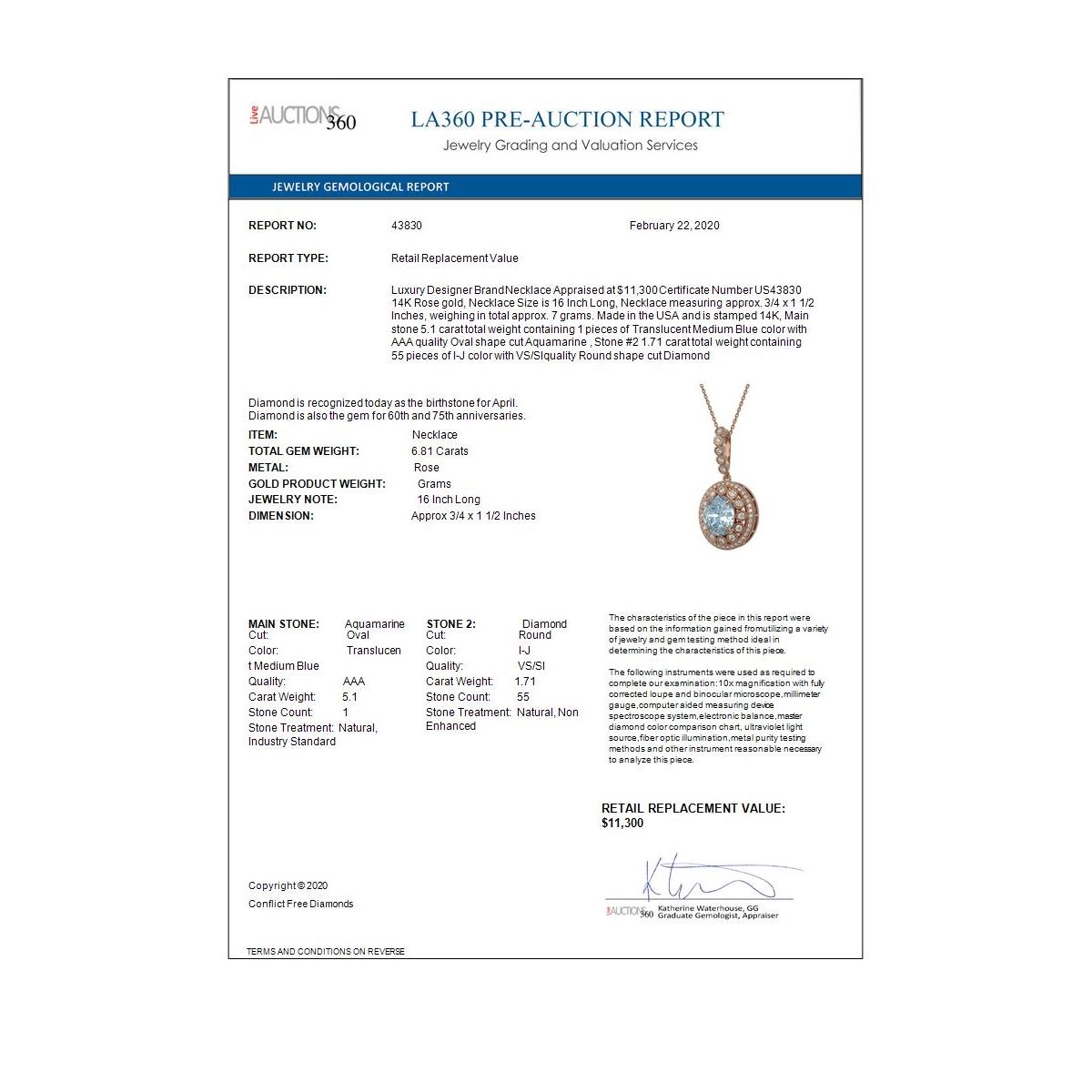REF-228F2M - SKU: 43830 ---- 6.81 ctw Aquamarine & Diamond Victorian Necklace 14K Rose Gold