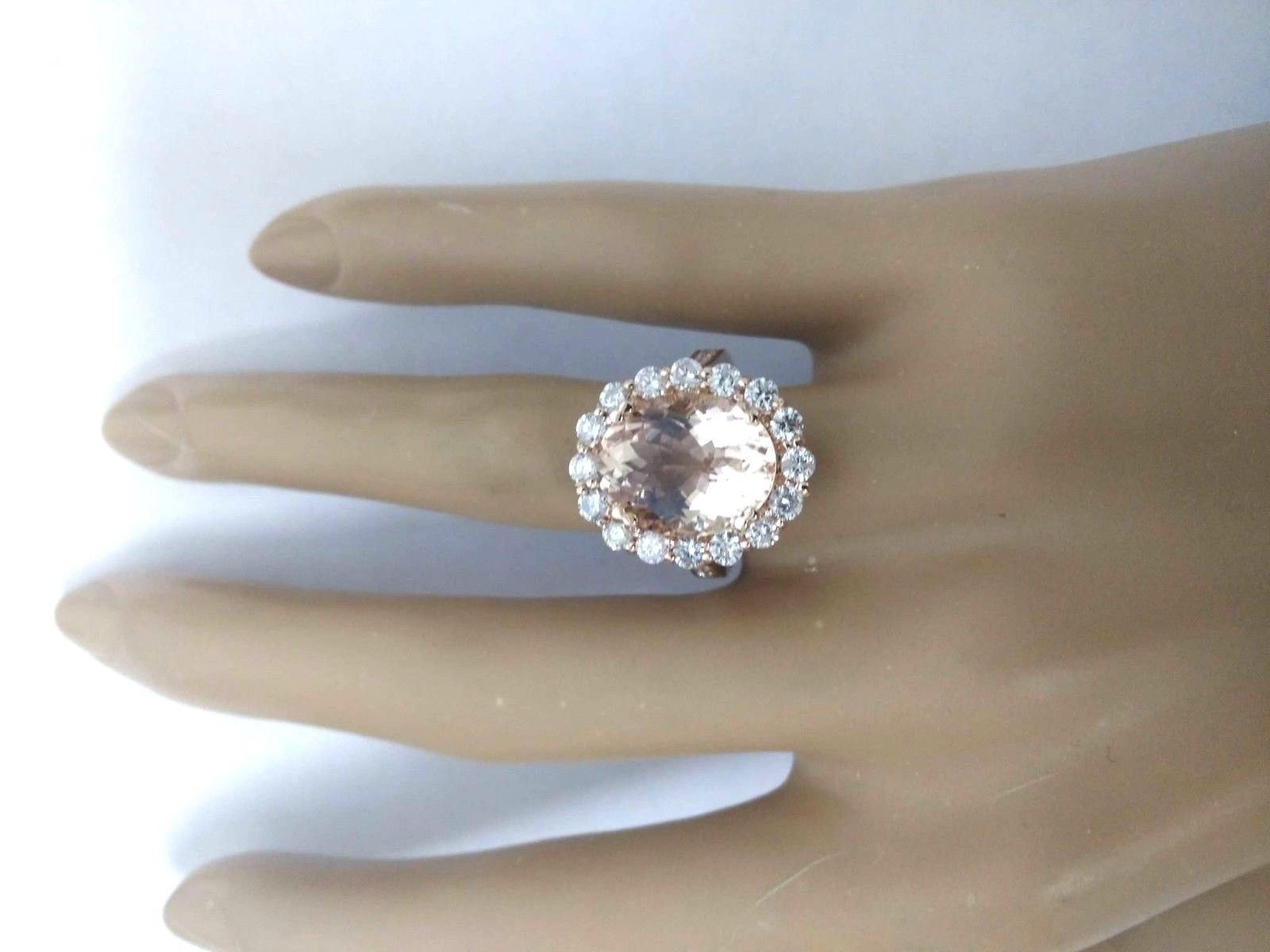 6.82 Carat Natural Morganite 14K Solid Rose Gold Diamond Ring