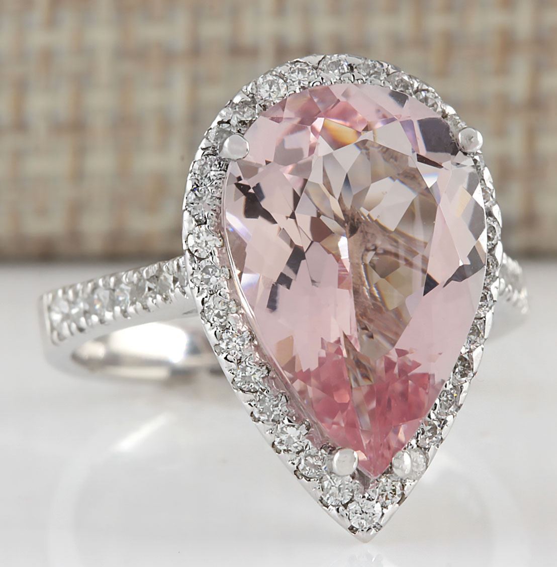 6.82 CTW Natural Morganite And Diamond Ring In 18K White Gold