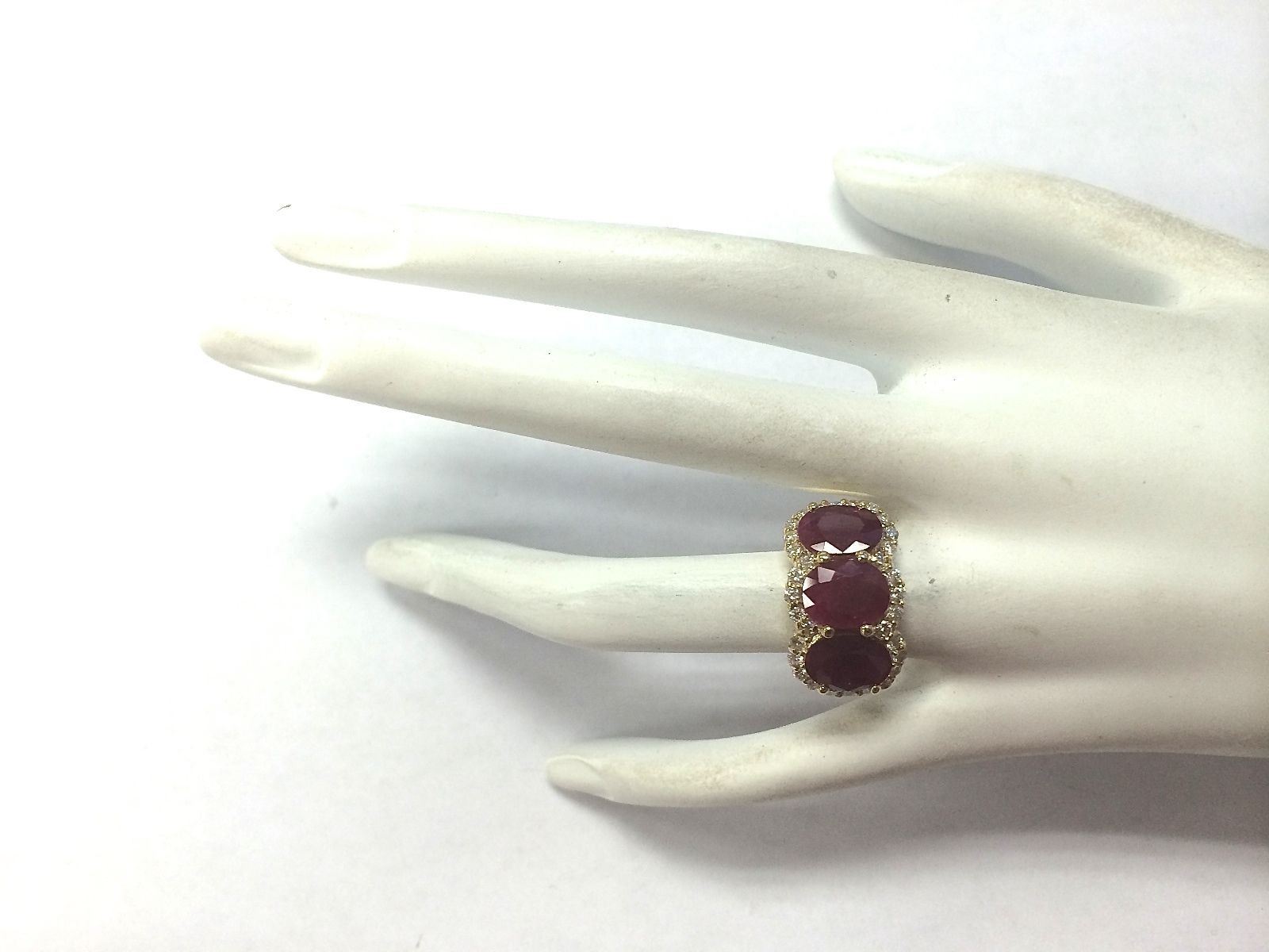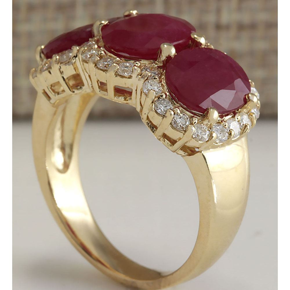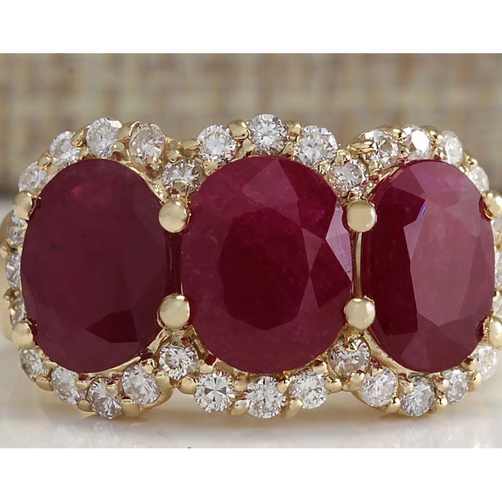 6.82 CTW Natural Red Ruby And Diamond Ring 18K Solid Yellow Gold