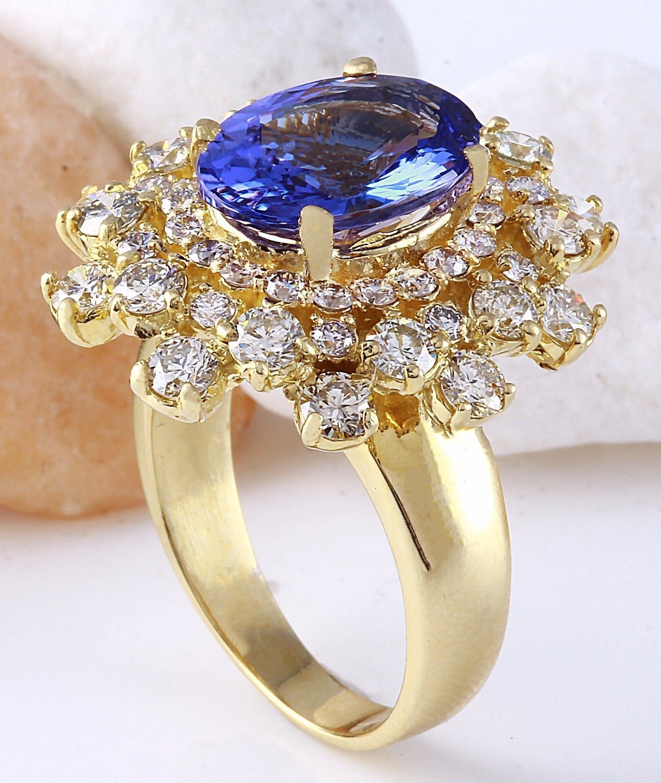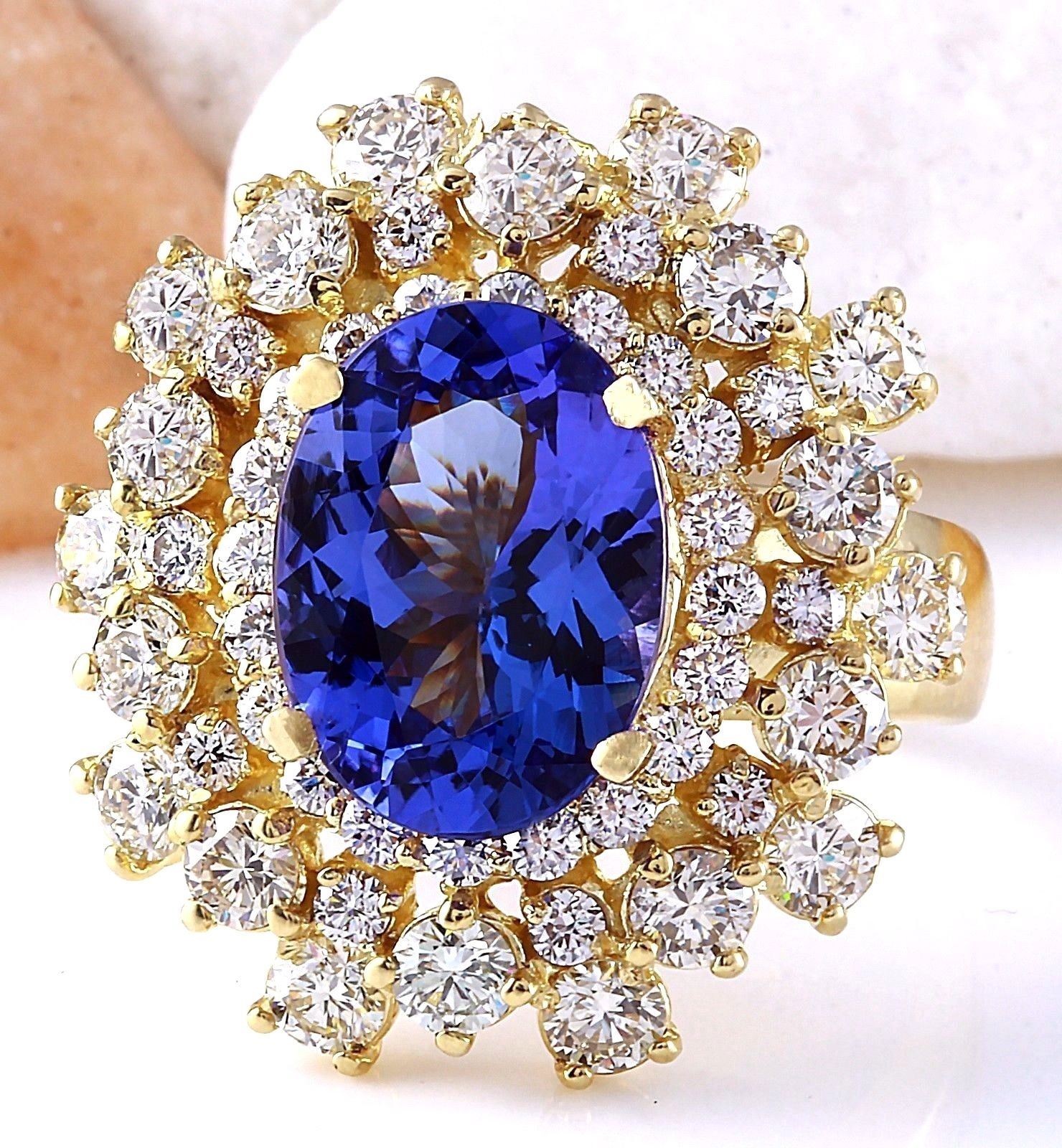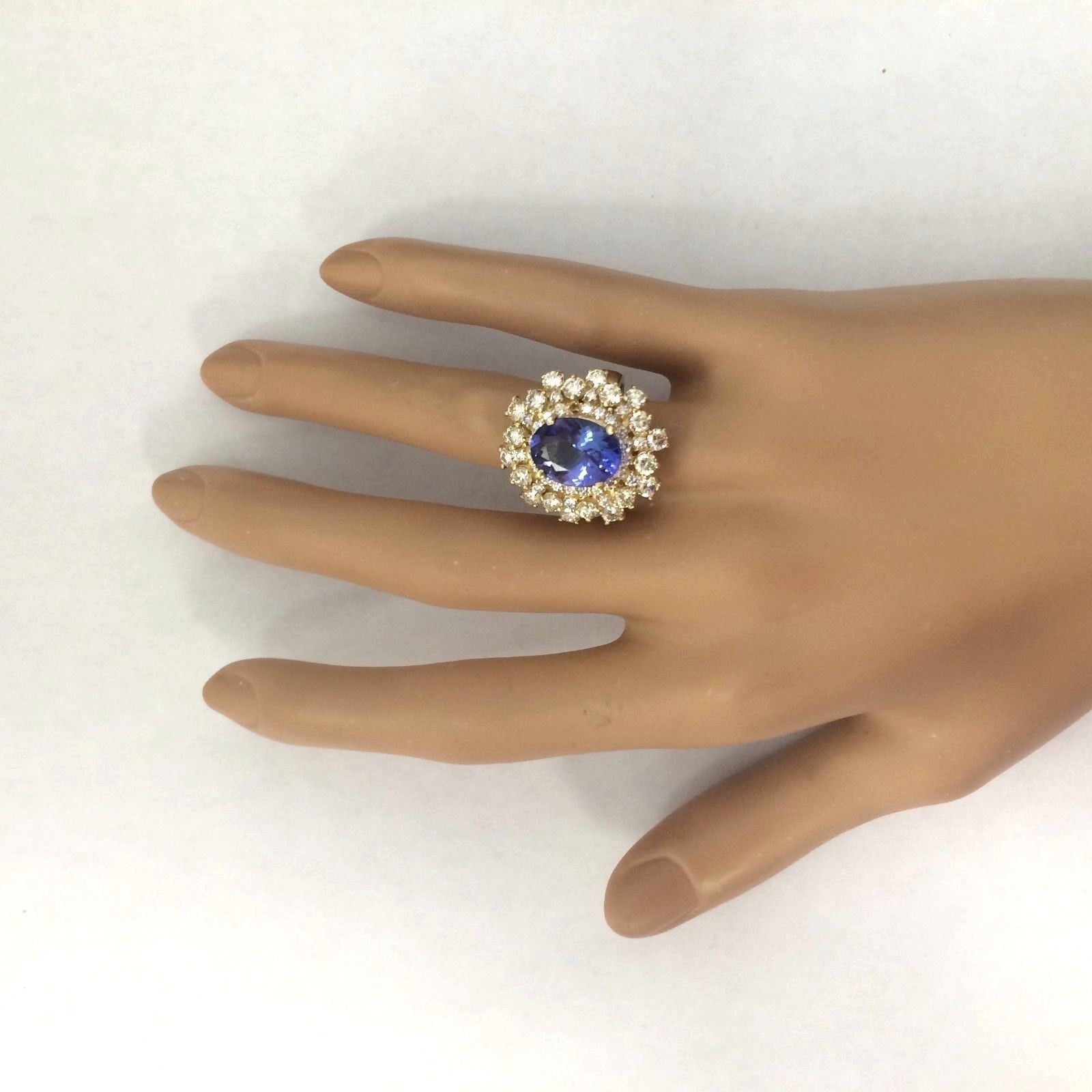 6.82 Carat Natural Tanzanite 18K Solid Yellow Gold Diamond Ring