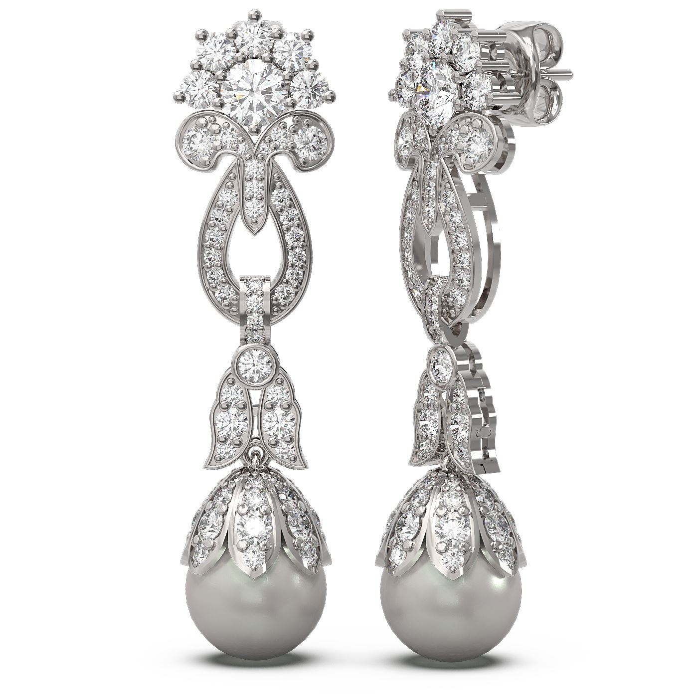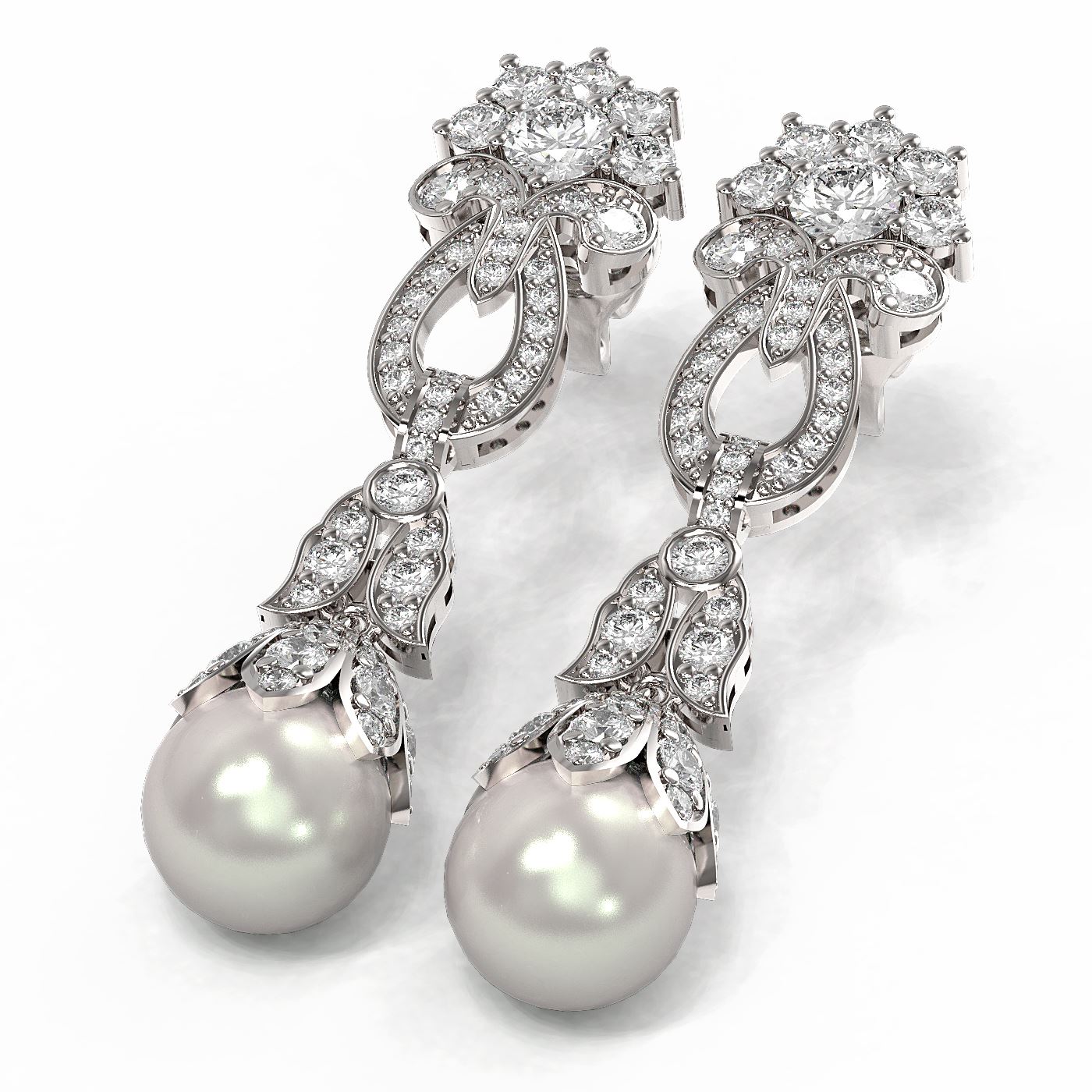 REF-544H3R - SKU: 55166 ---- 6.87 ctw Diamond & Pearl Earrings 18K White Gold