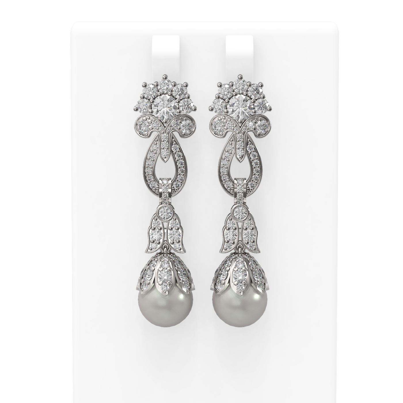 SKU: 55166 ---- 6.87 ctw Diamond & Pearl Earrings 18K White Gold