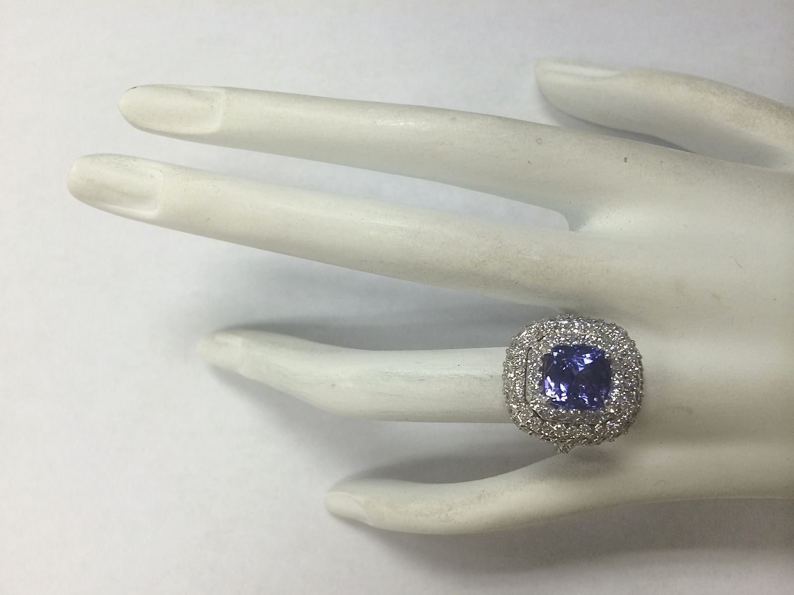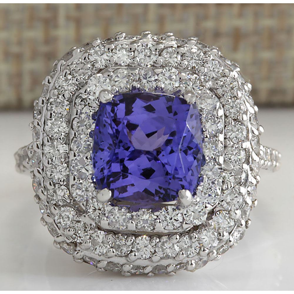 6.88 CTW Natural Tanzanite Diamond Ring 18K Solid White Gold
