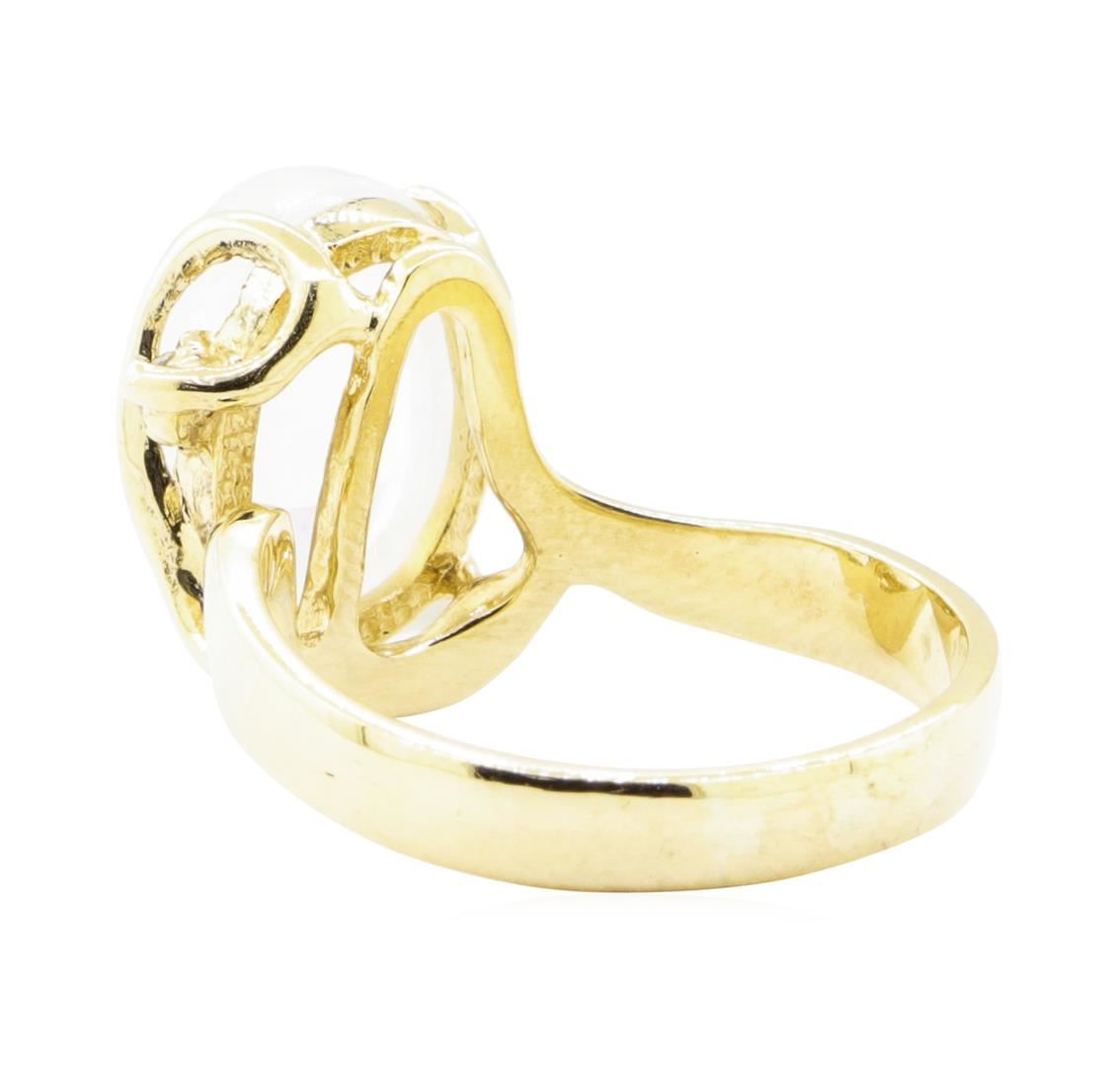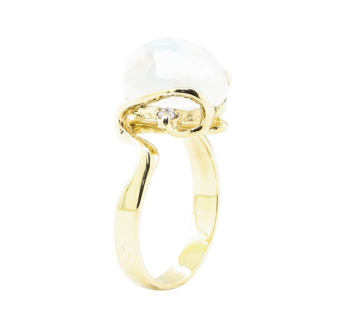 One ring featuring: 14KT yellow gold weighing 7.9 grams containing one oval cabochon crystal opal weighing 6.80ct and one diamond weighing 0.08ct.