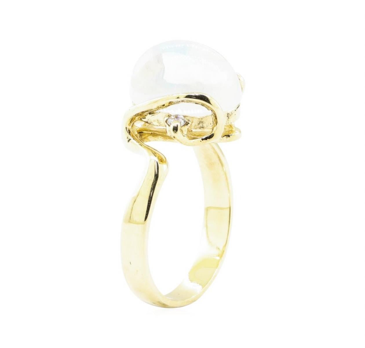 One ring featuring: 14KT yellow gold weighing 7.9 grams containing one oval cabochon crystal opal weighing 6.80 ct and one diamond weighing 0.08ct.