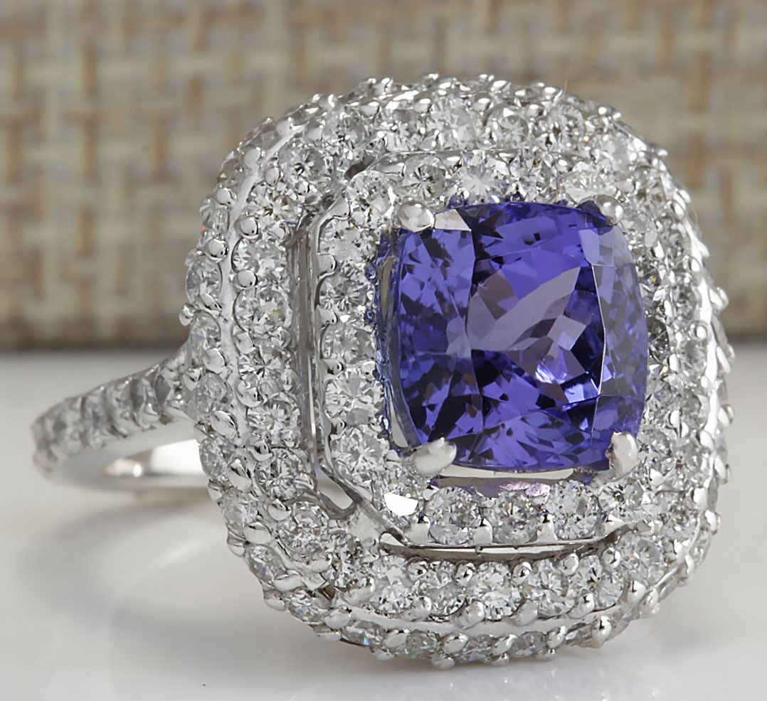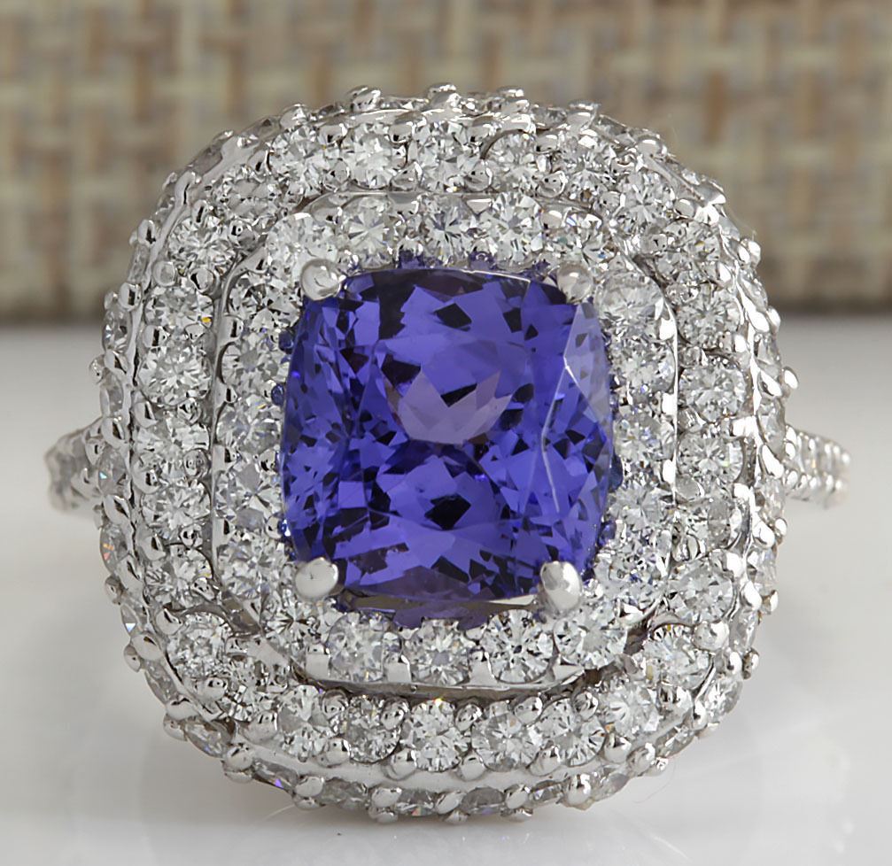 Stamped: 14K Ring Size: 6 Total Ring Weight: 10 Grams Diamond Weight: Total natural diamond weight is 2.32carat. SI1-SI2 clarity / G-H color Gemstone Weight: Total Natural Tanzanite Weight is 4.56ctw (Measures: 8.45x8.45mm) Face Measures: 19.28x18.40mm Main stone color: Blue [SKU:702542]
