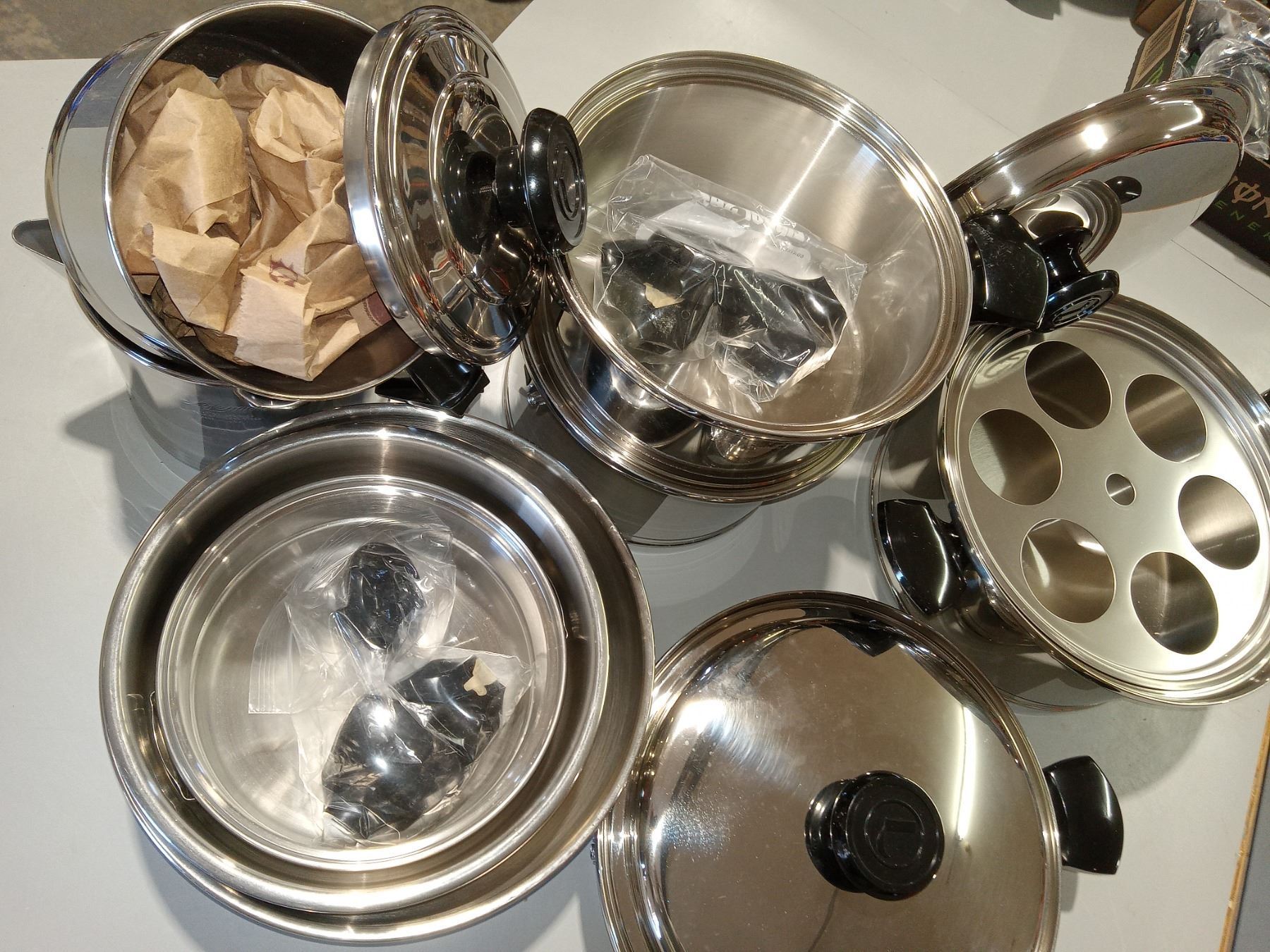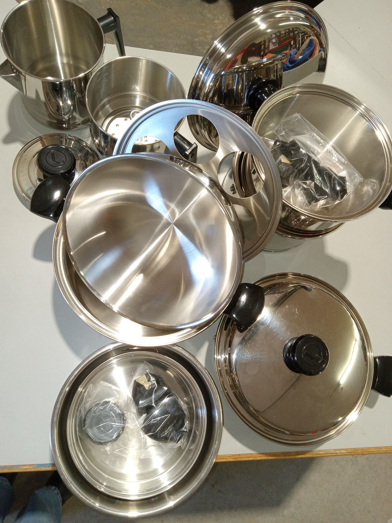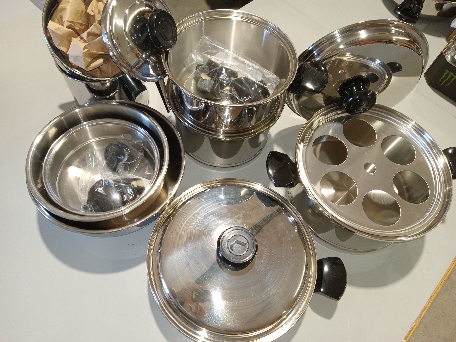 6-8QT. & 4QT. POTS; PURCULATOR; BOWLS(x3)