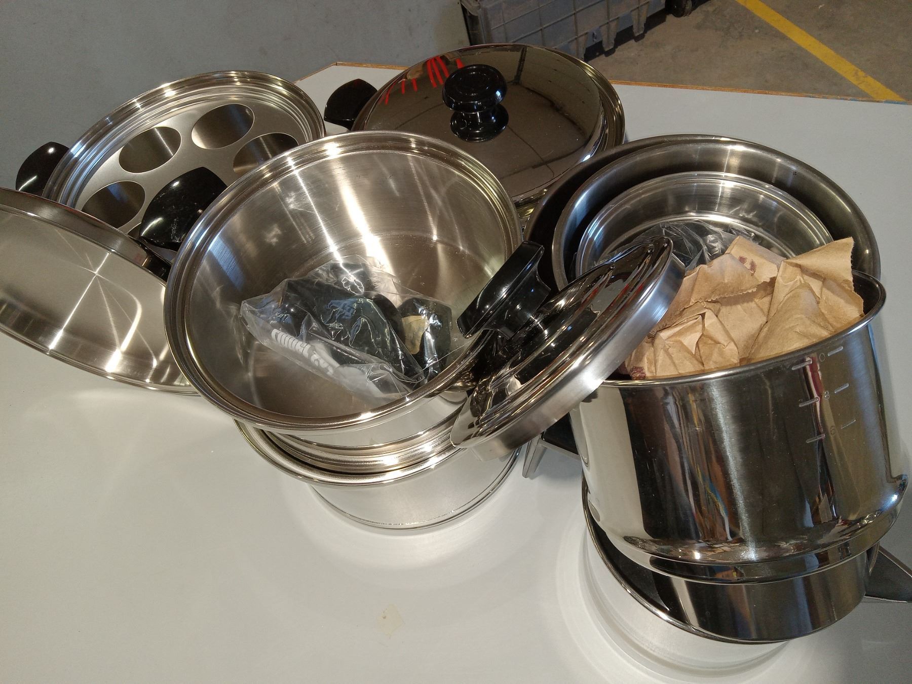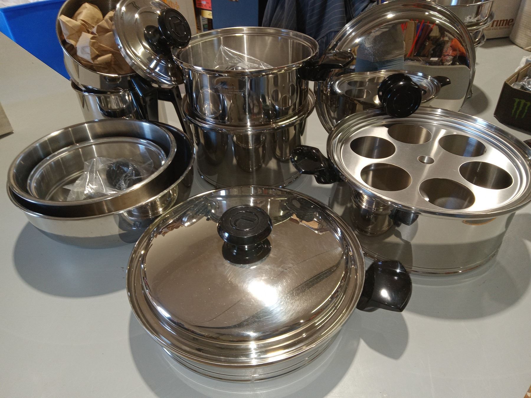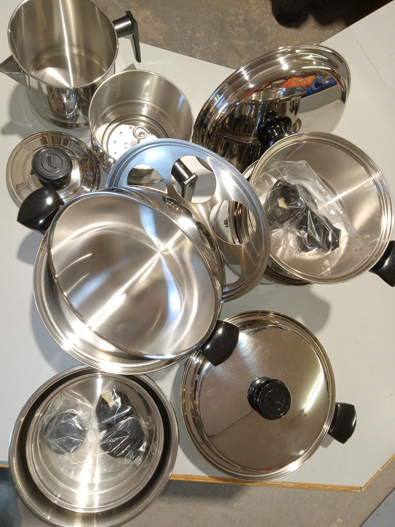 6-8QT. & 4QT. POTS; PURCULATOR; BOWLS(x3)