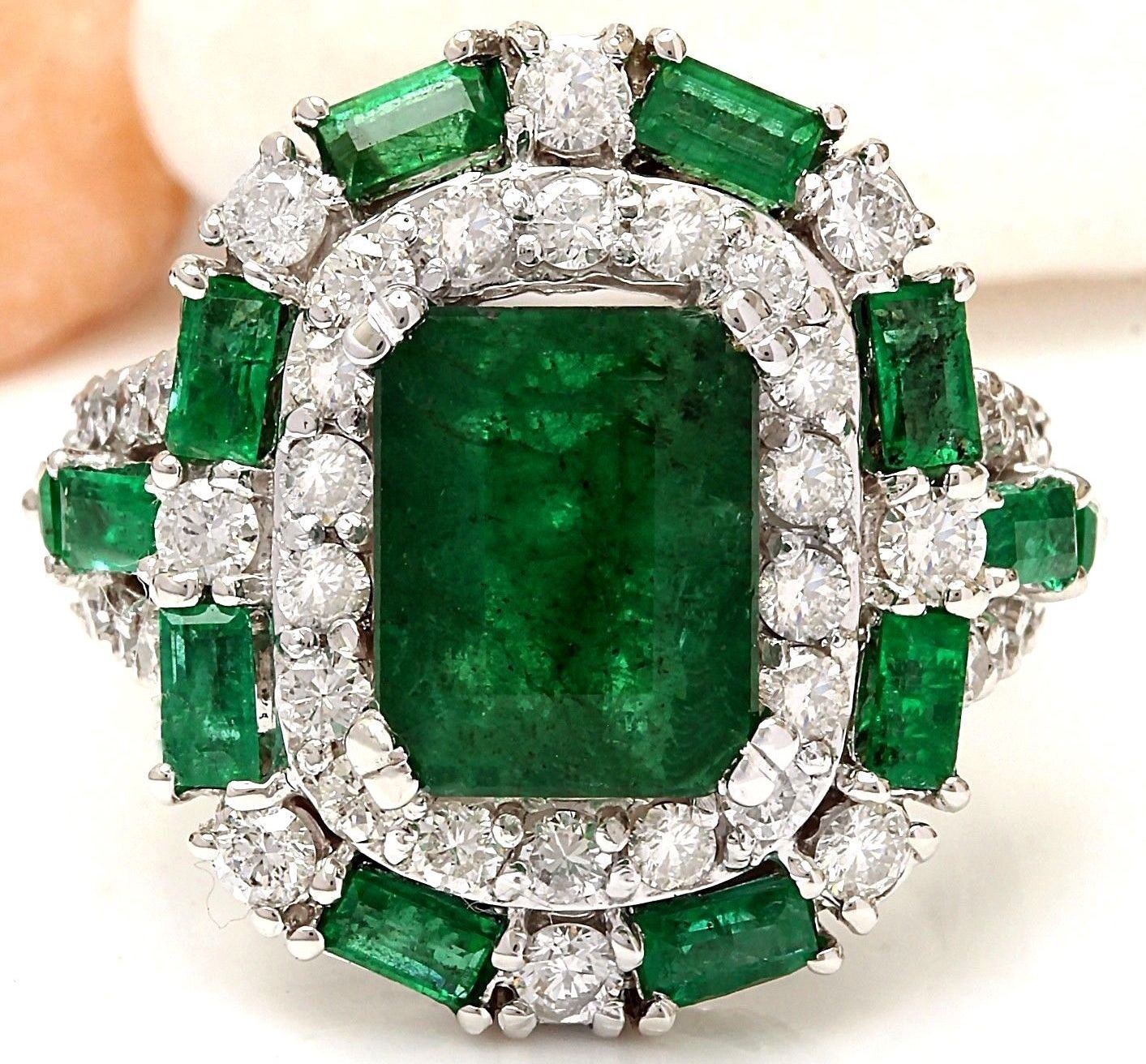6.90 Carat Natural Emerald 18K Solid White Gold Diamond Ring