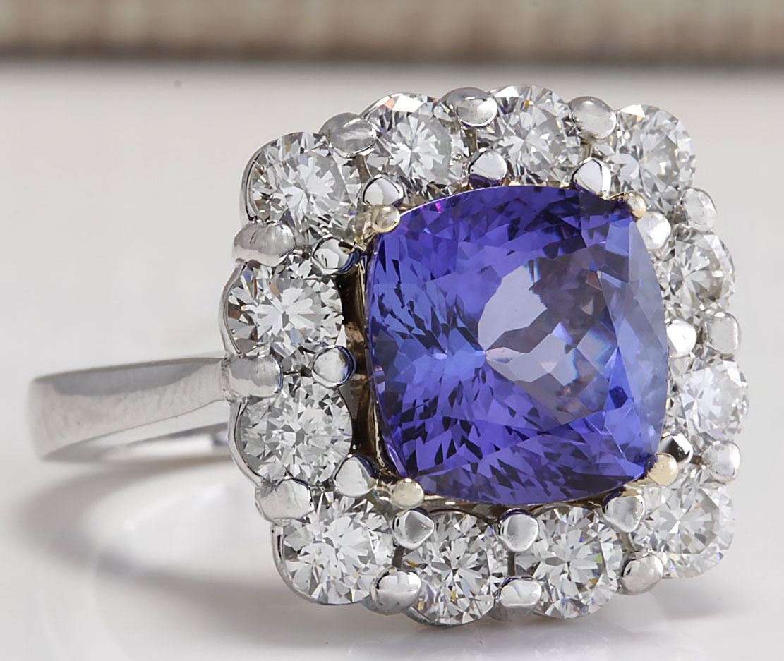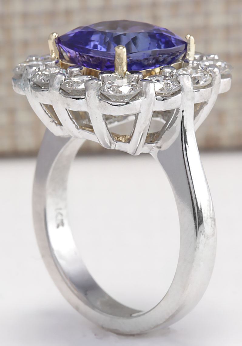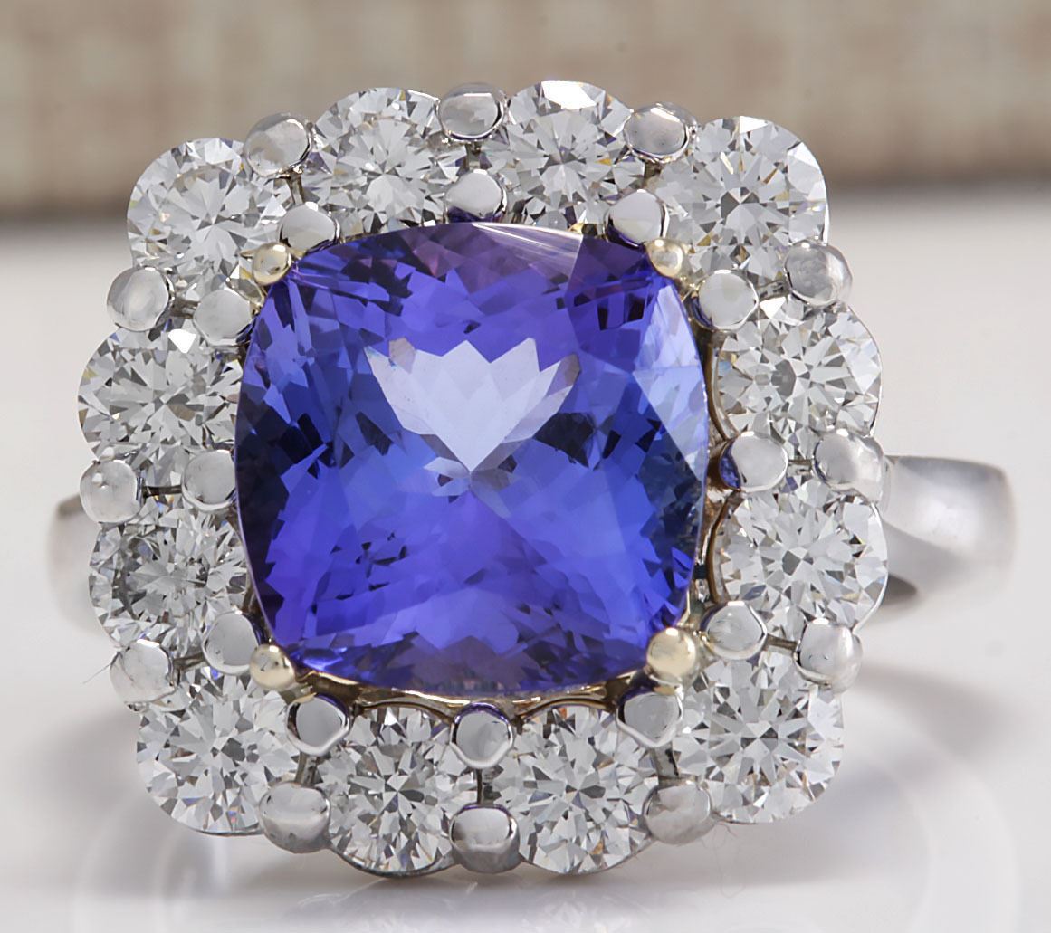 Stamped: 14K Ring Size: 6.25 Total Ring Weight: 10 Grams Diamond Weight: Total natural diamond weight is 2.03carat. SI1-SI2 clarity / G-H color Gemstone Weight: Total Natural Blue Tanzanite Weight is 4.88ctw (Measures: 10.00x9.98mm) Face Measures: 16.82x16.99mm Main stone color: Blue [SKU:702538]