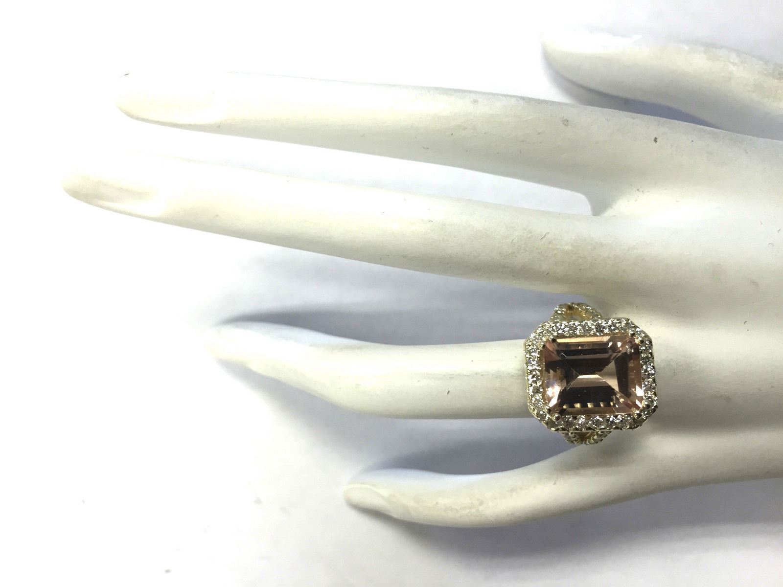 6.92 CTW Natural Peach Morganite And Diamond Ring In 18K Solid Yellow Gold
