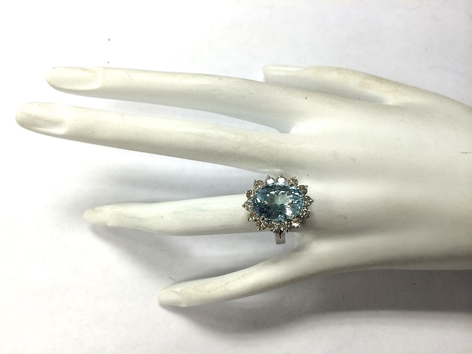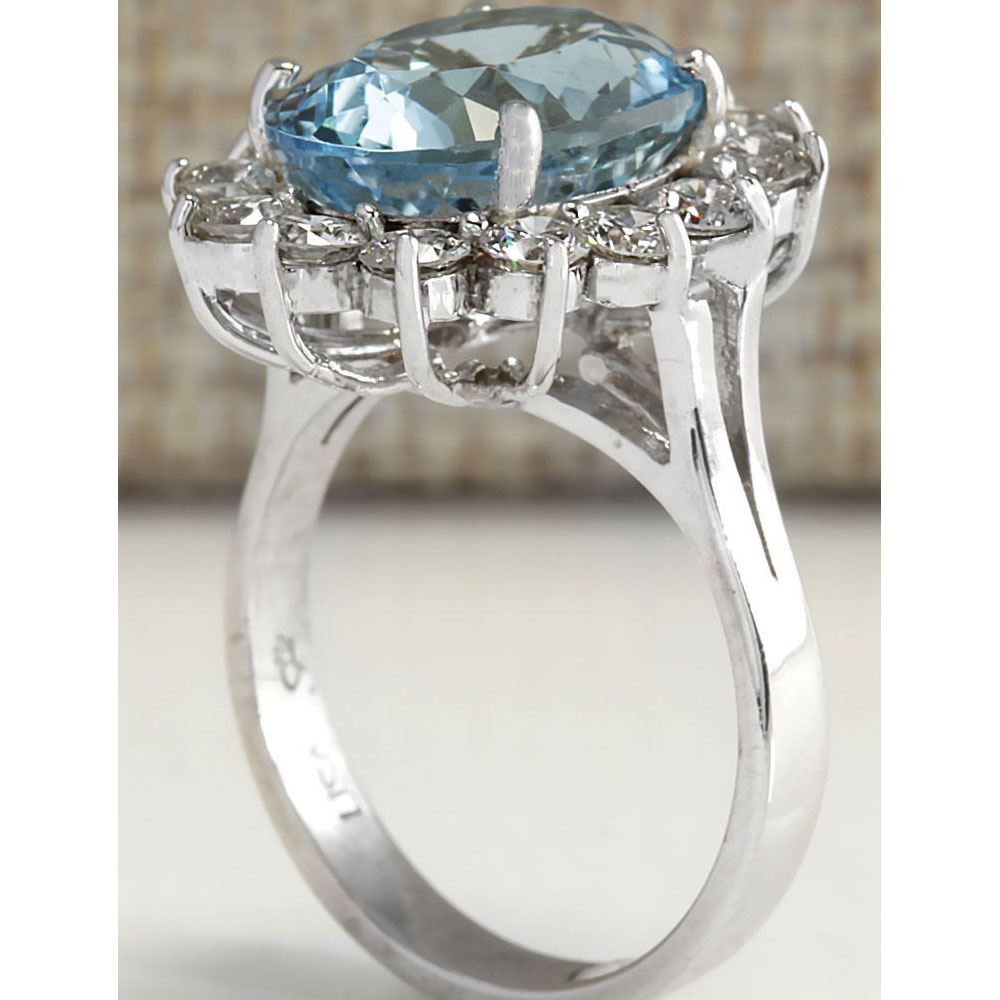 6.96 CTW Natural Aquamarine And Diamond Ring In 14K Solid White Gold