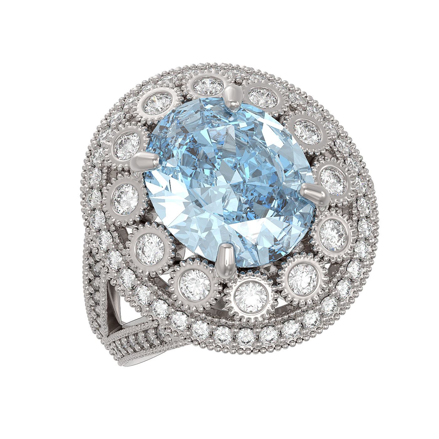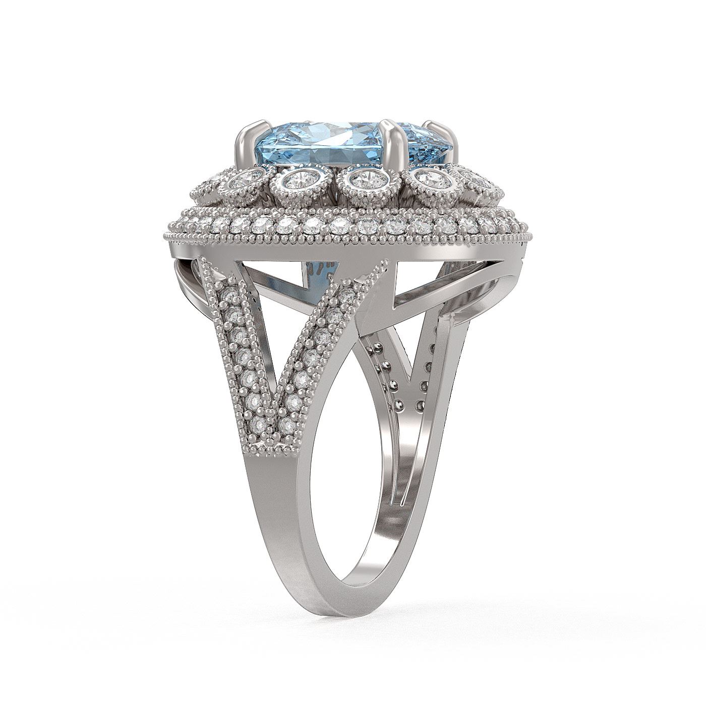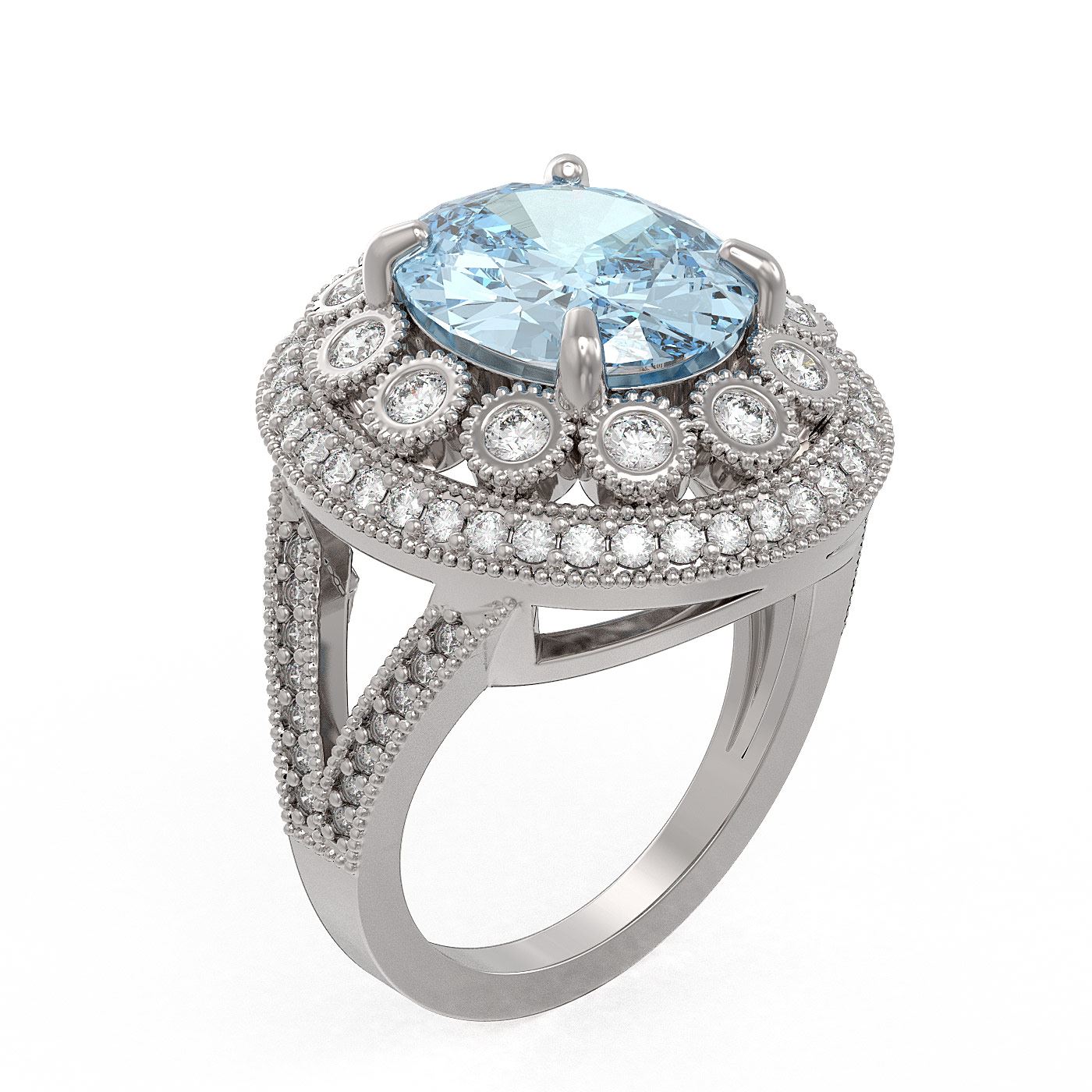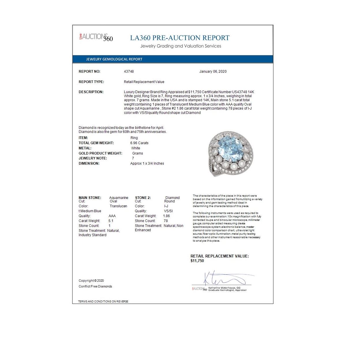 REF-237R5K - SKU: 43748 ---- 6.96 ctw Certified Aquamarine & Diamond Victorian Ring 14K White Gold