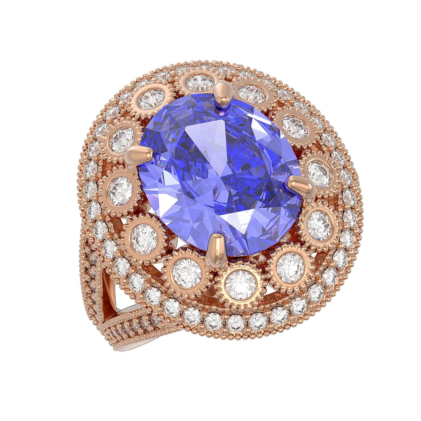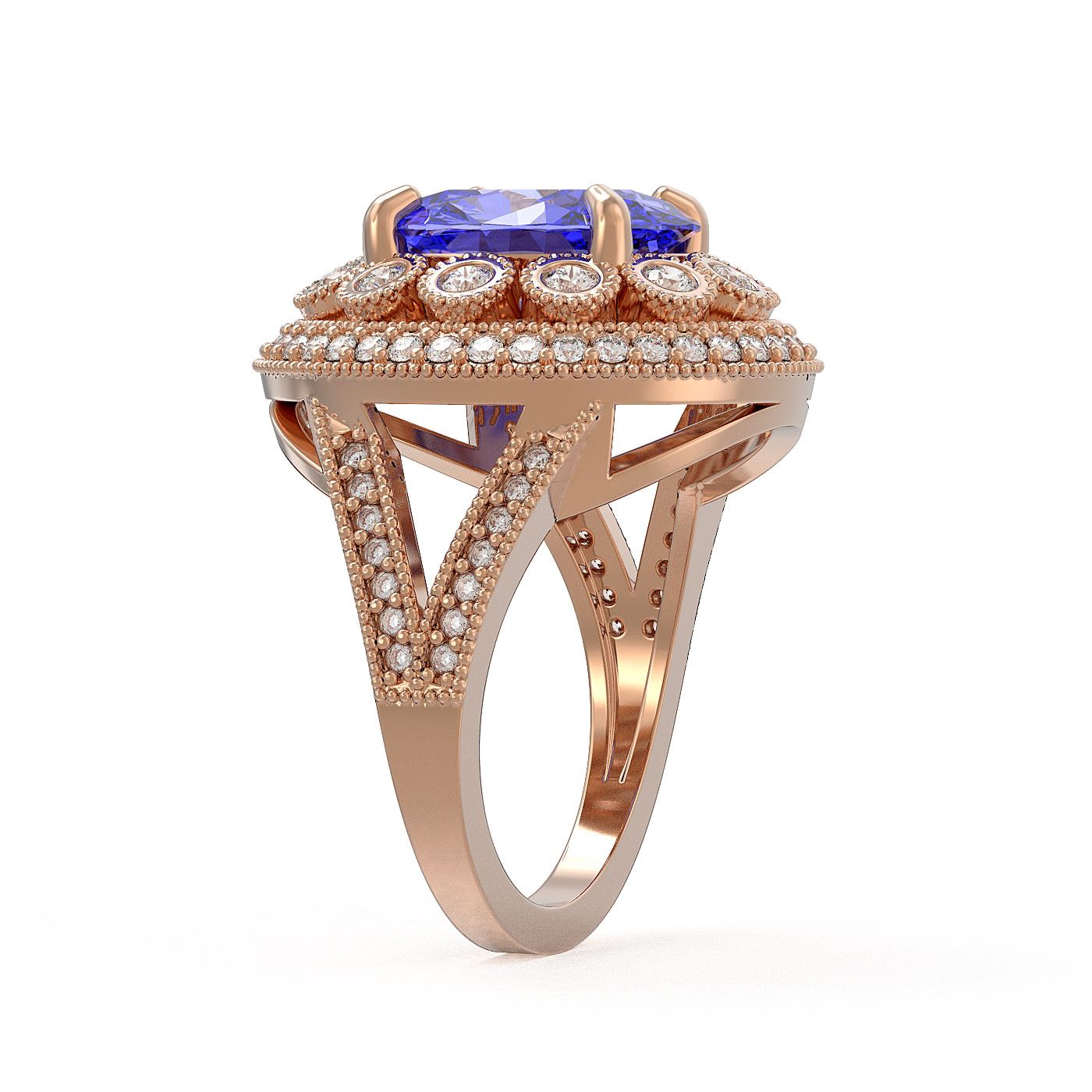 REF-302H4R - SKU: 43746 ---- 6.96 ctw Certified Tanzanite & Diamond Victorian Ring 14K Rose Gold