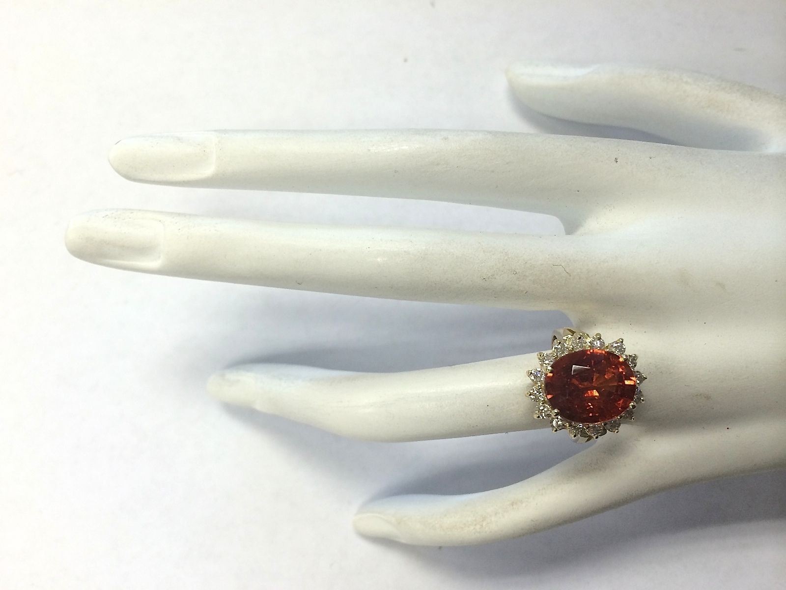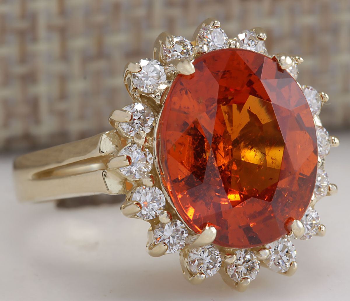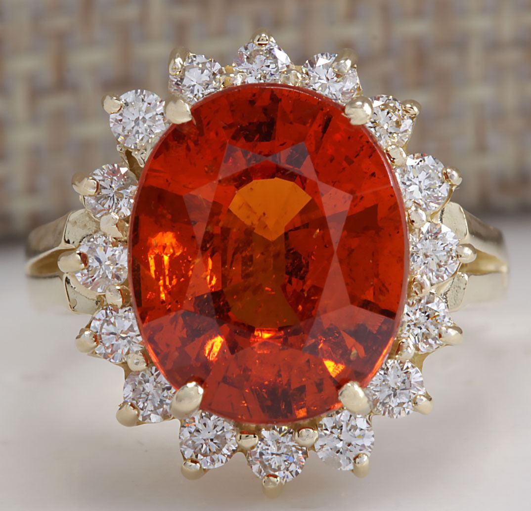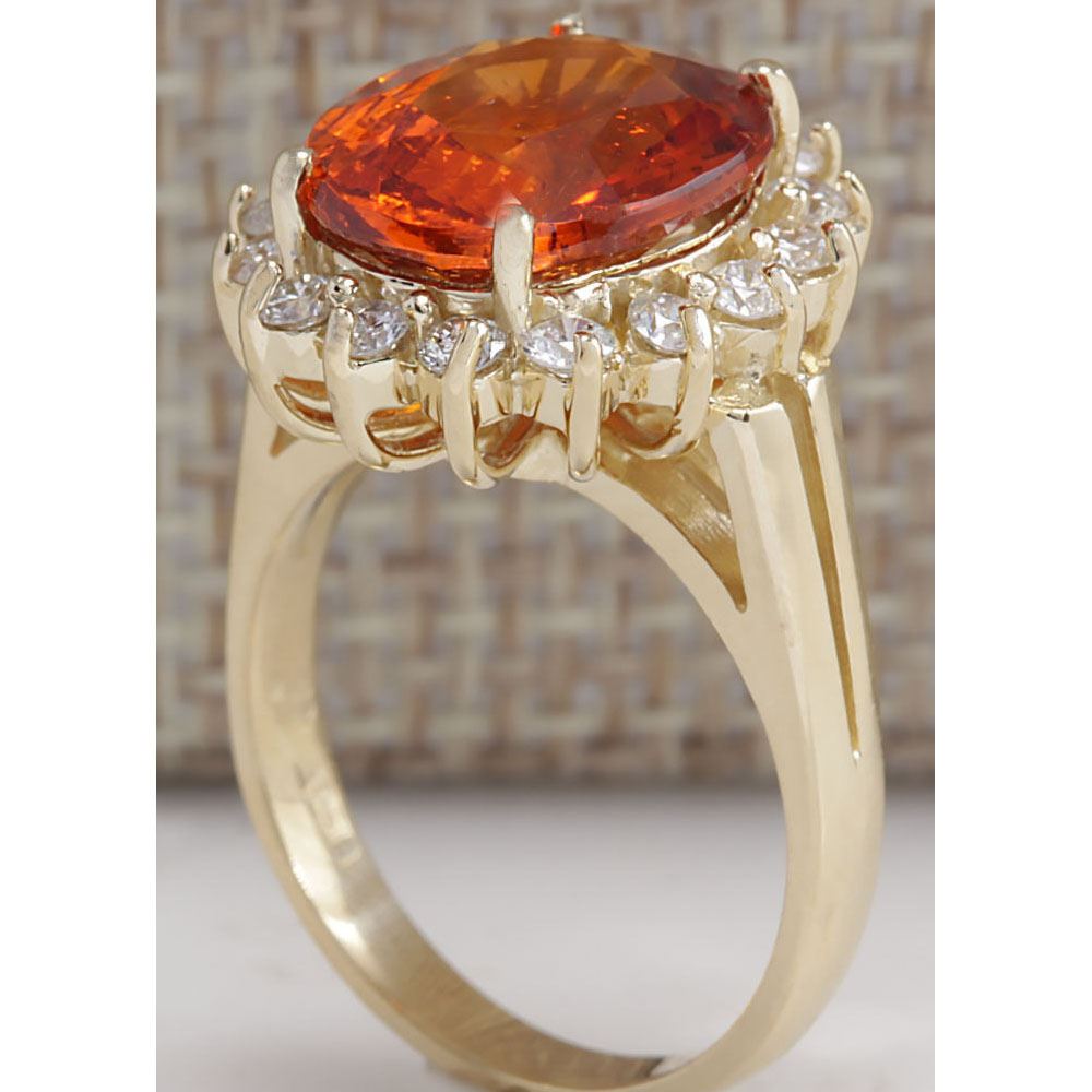 6.96CTW Natural Mandarin Garnet And Diamond Ring In18K Yellow Gold