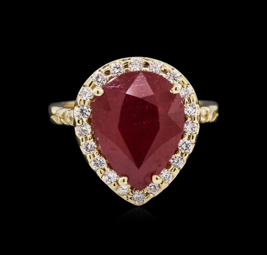 One ring featuring: 14KT white gold weighing 5.13 grams containing one ruby with a total weight of 6.97ct and diamonds with a total weight of 0.60ct.