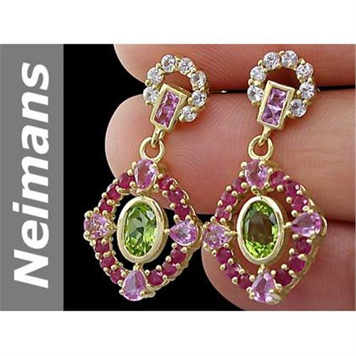 6.98 ct Peridot, Pink & White Sapphire & Ruby Earrings 14kt Gold