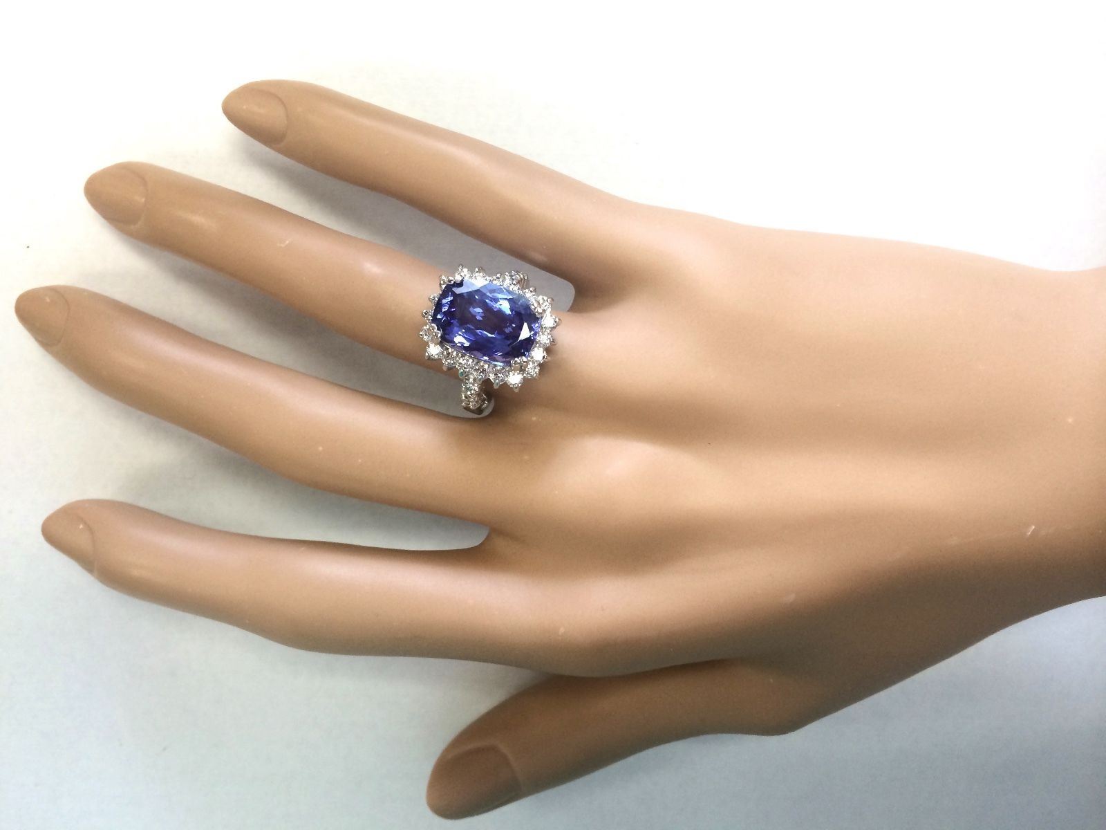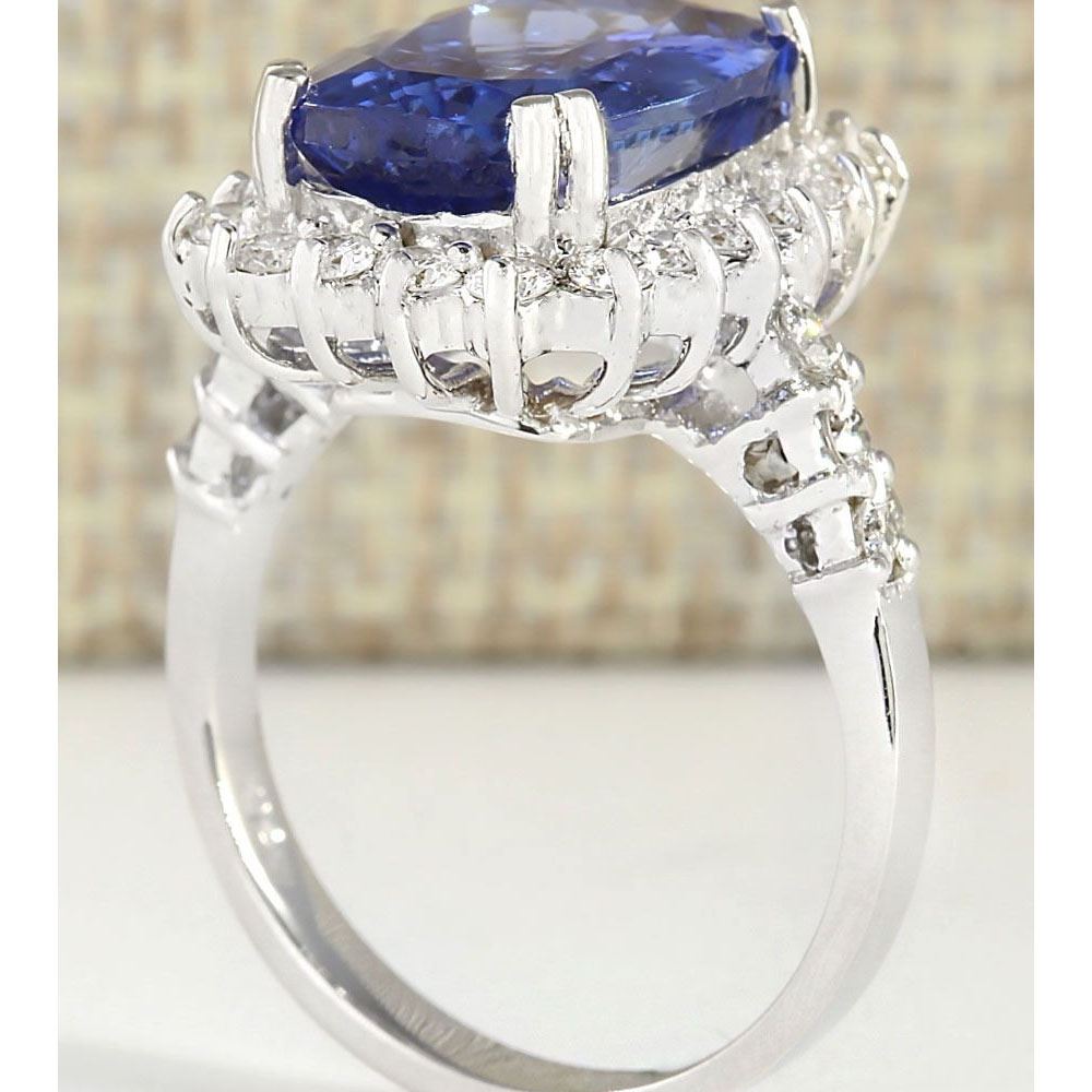 6.99 CTW Natural Blue Tanzanite And Diamond Ring 14k Solid White Gold