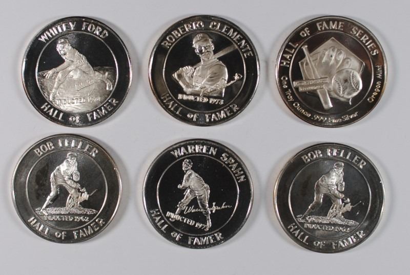 2-BOB FELLER, WHITEY FORD, WARREN SPAHN, ROBERTO CLEMENTE & HOF EMBLEM, EST $170-$200