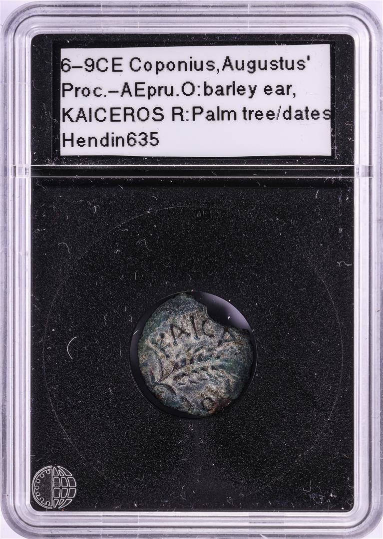 One 6-9CE Coponius Augustus Bronze Prutah Ancient Coin.