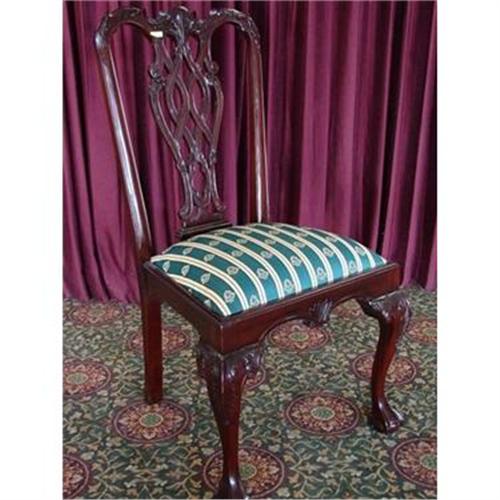 YOU ARE BIDDING ON A SET OF 6 SIDE CHAIRS, IF YOU ARE INTERESTED IN JUST A FEW, WE CAN SPLIT UP THE SET...JUST WHAT YOU'VE BEEN LOOKING FOR... FABRIC WILL MAY VARY... TERRIFIC FORM AND SHAPE... FABULOUS ANTIQUE STYLE WAVERLY UPHOLSTERY... EXQUISITE PIERCED BACKS WITH CUSHIONED SEATS... WHAT A GORGEOUS SET OF 6 FABULOUS VICTORIAN ORNATE CHIPPENDALE DINING CHAIRS... This set is hand crafted in what is considered a lost art form. The aged WALNUT has darkened into a full-bodied chestnut brown, hand rubbed in a smooth bees wax finish. This SET OF 6 FABULOUS VICTORIAN ORNATE CHIPPENDALE DINING CHAIRS are sure to become a highly sought after investment, to insure ownership of this quality set.