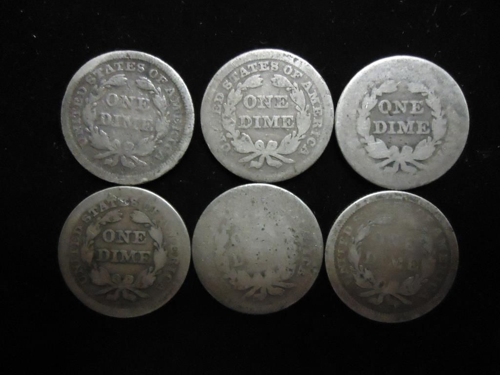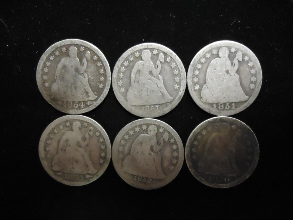 6 ASSORTED 1850'S SEATED LIBERTY DIMES