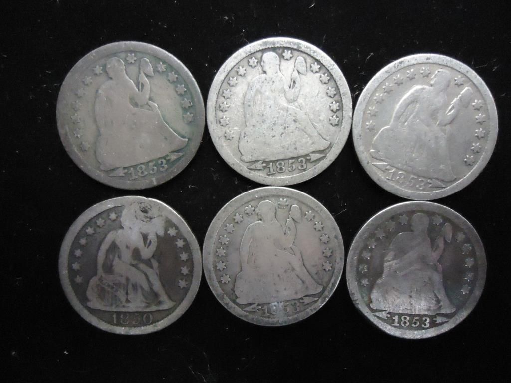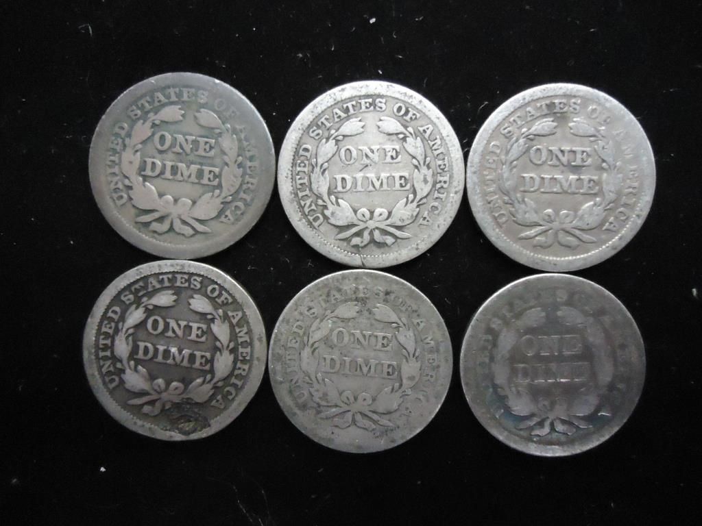6 ASSORTED 1850'S SEATED LIBERTY DIMES