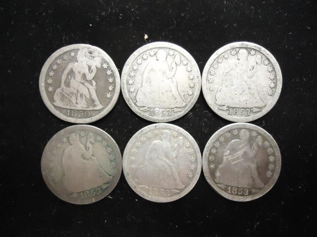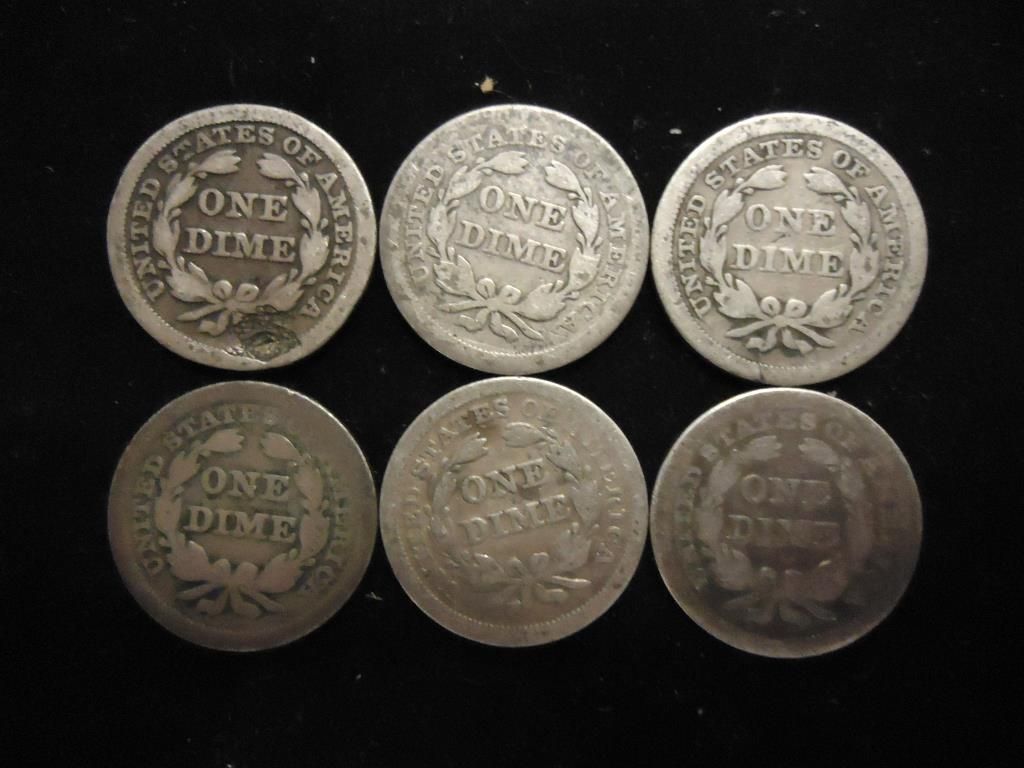 6 ASSORTED 1850'S SEATED LIBERTY DIMES