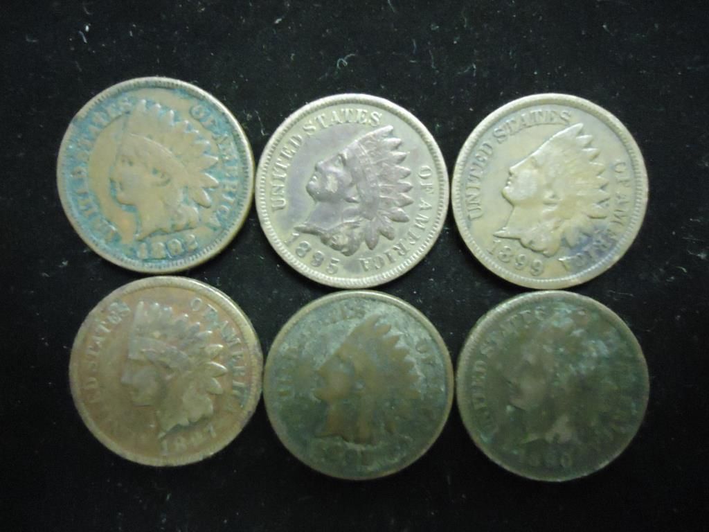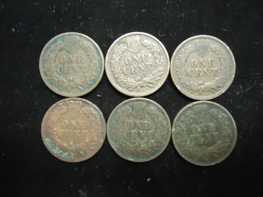 6 ASSORTED 1890'S INDIAN HEAD CENTS ALL FINES